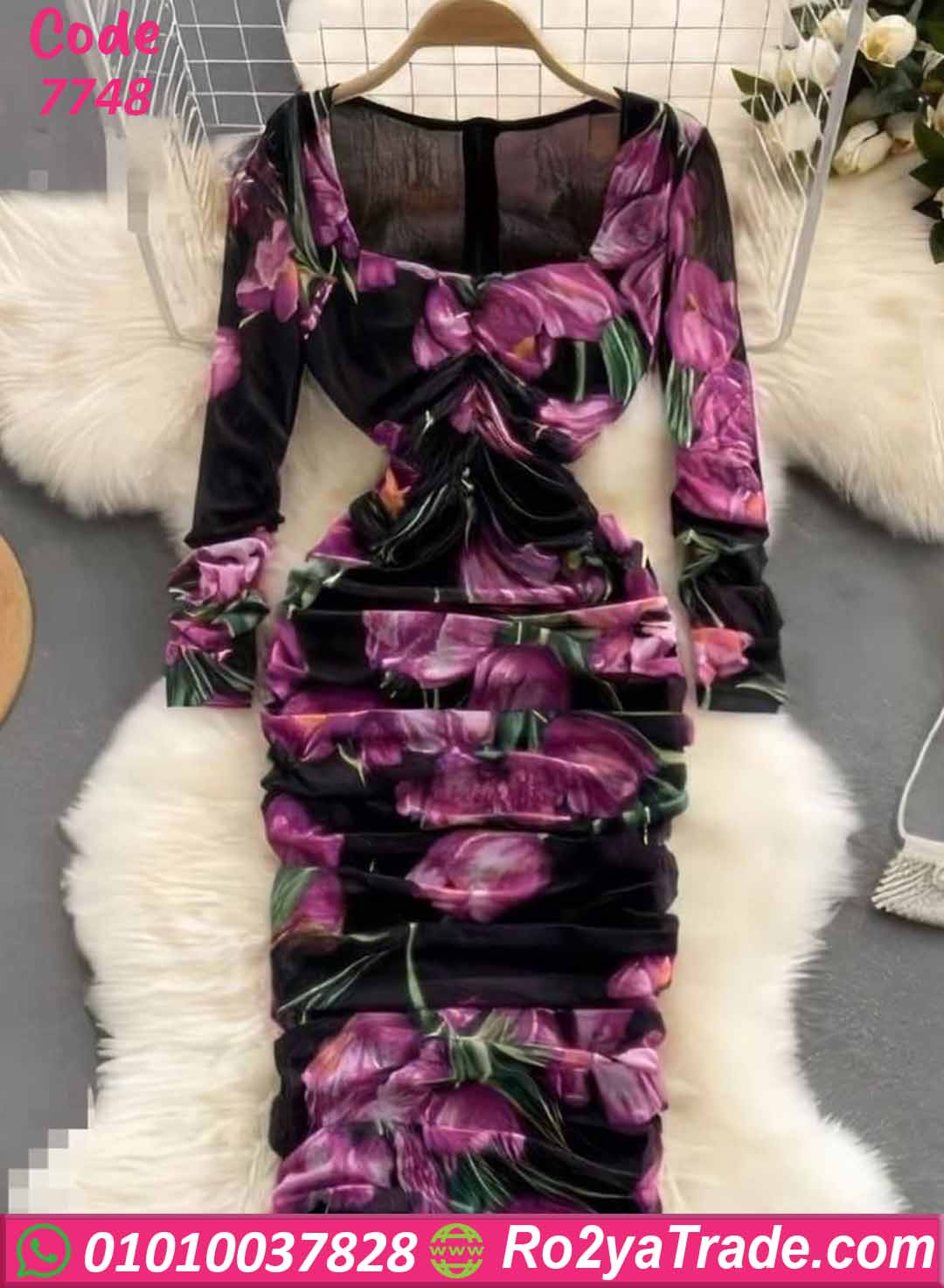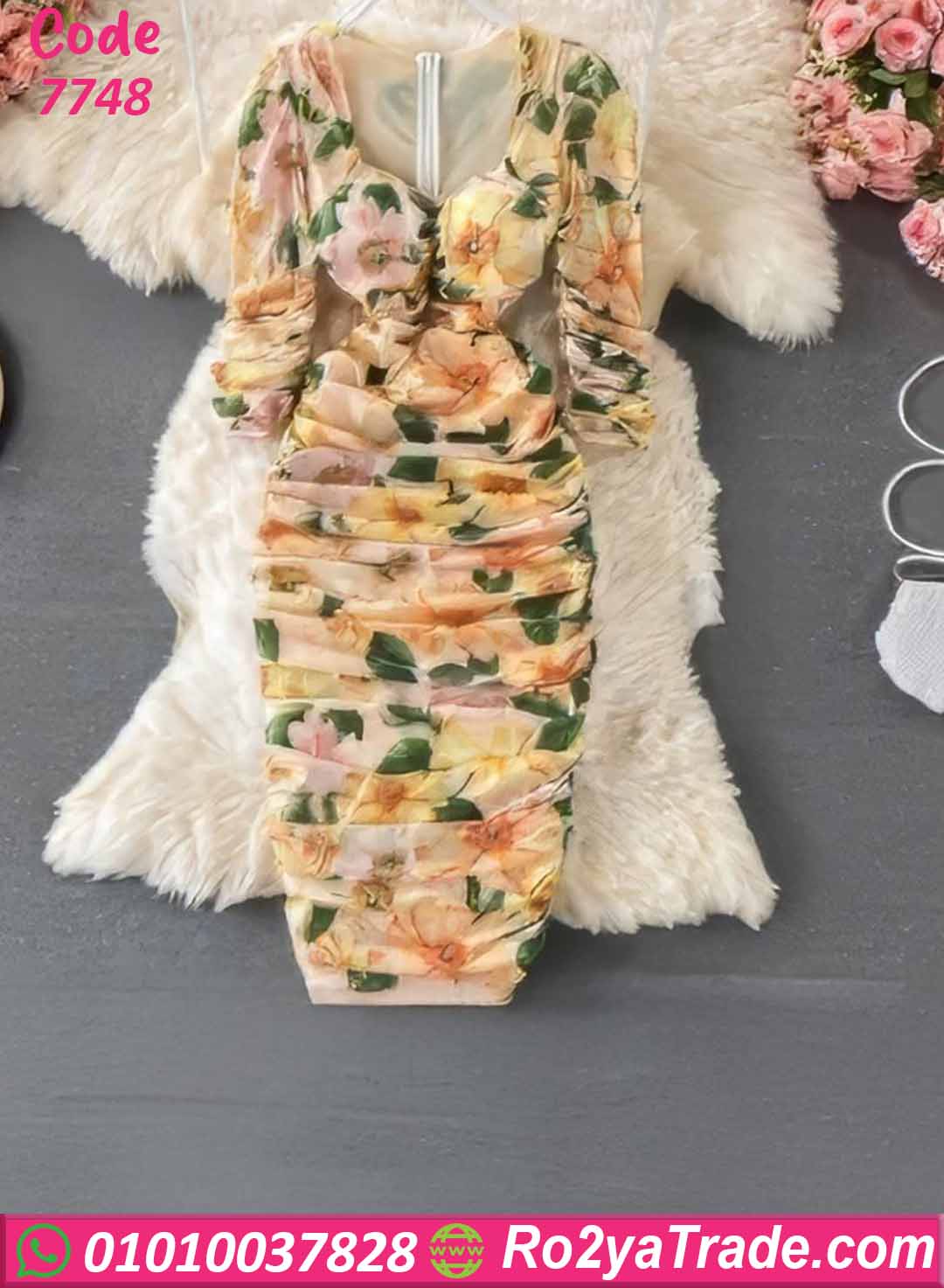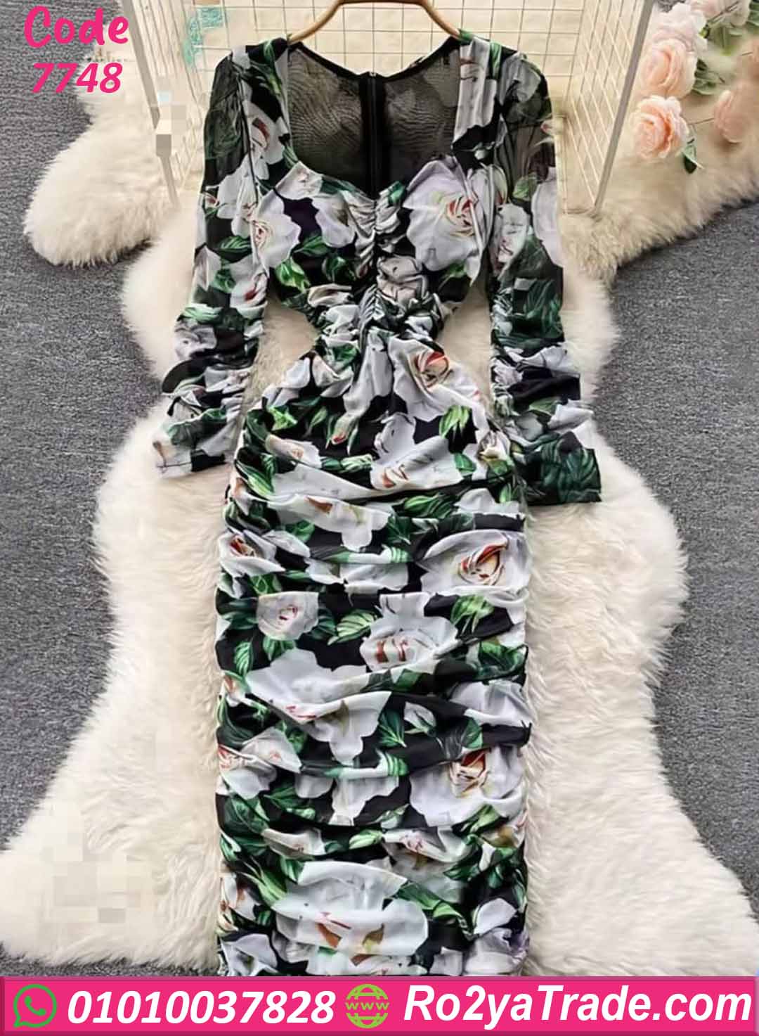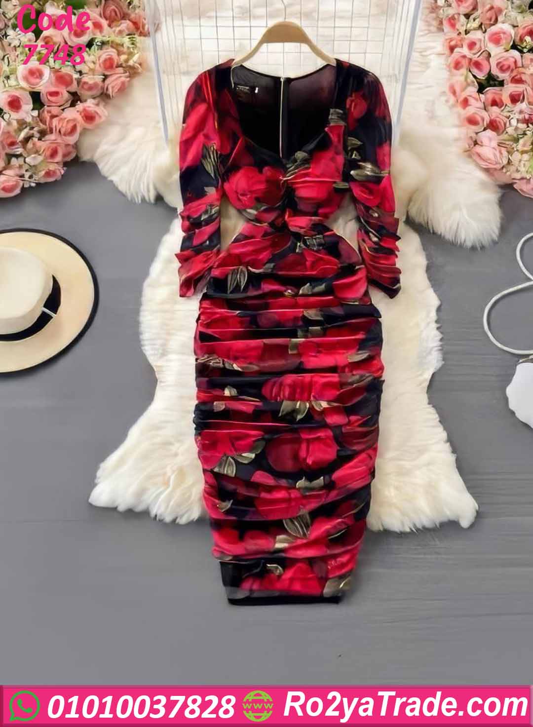 دريس صيفي طويل 7748 من Lavida بتصميم مميز بطبعة ورد جذابة متوفر بأكتر من لون
