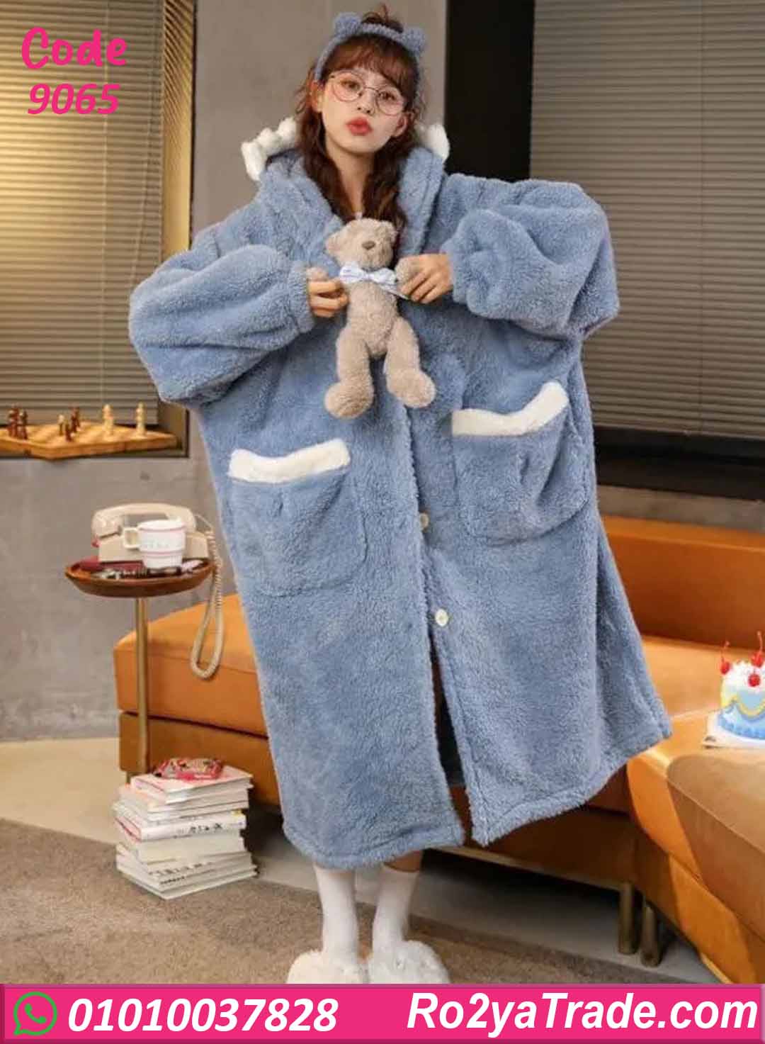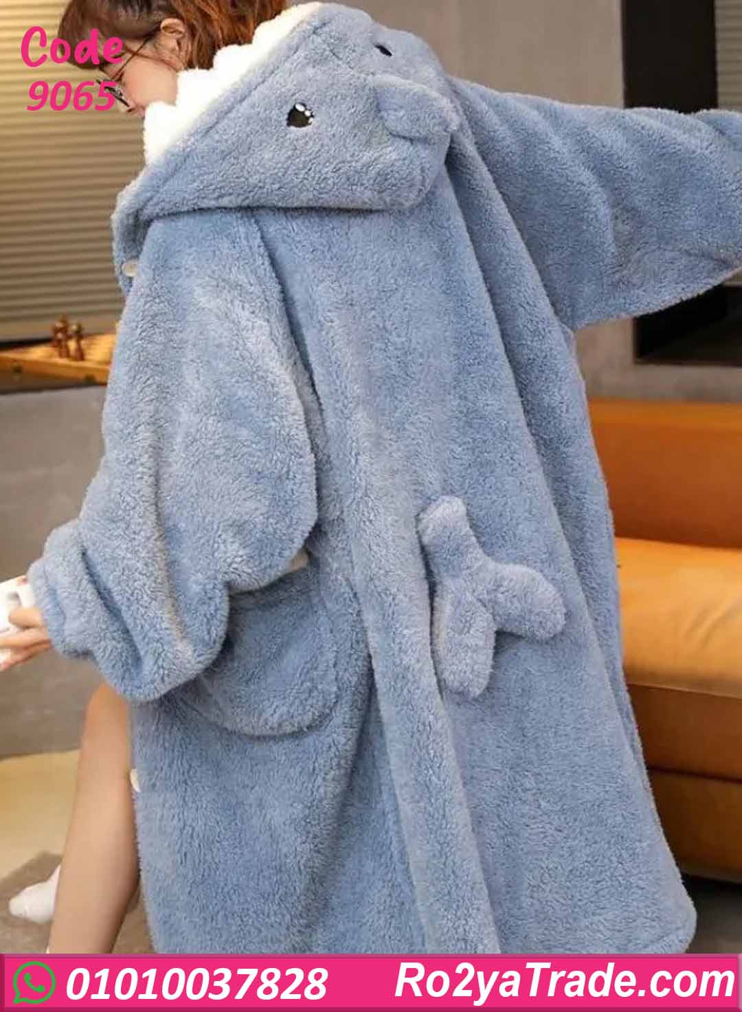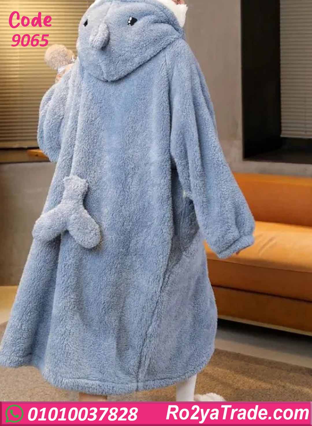 مصنوع من خامة قطيفة تقيلة وناعمة جدًا بتدي إحساس عالي بالدفا، تصميم واسع ومريح بكم طويل، مع جيوب أمامية عملية ولمسة كيوت مميزة بتخلي شكله جذاب ولطيف.