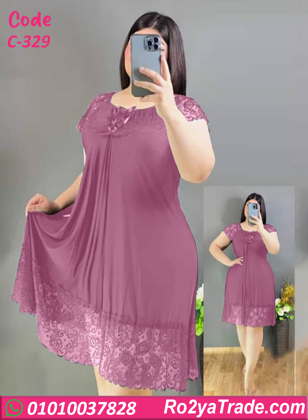 كاش بيتي صيفي حريمي كود C-329 مصمم علشان يوفّر أقصى درجة من الراحة مع شكل أنيق وبسيط. الخامة ناعمة وخفيفة مناسبة لفصل الصيف، وبتسمح بتهوية كويسة للجسم من غير إحساس بالحر. تفاصيل الدانتيل في الأكمام وأسفل الكاش بتدي لمسة أنثوية شيك من غير مبالغة. القصة واسعة ومريحة تناسب اللبس اليومي داخل البيت وتدي إحساس بالراحة طول اليوم.