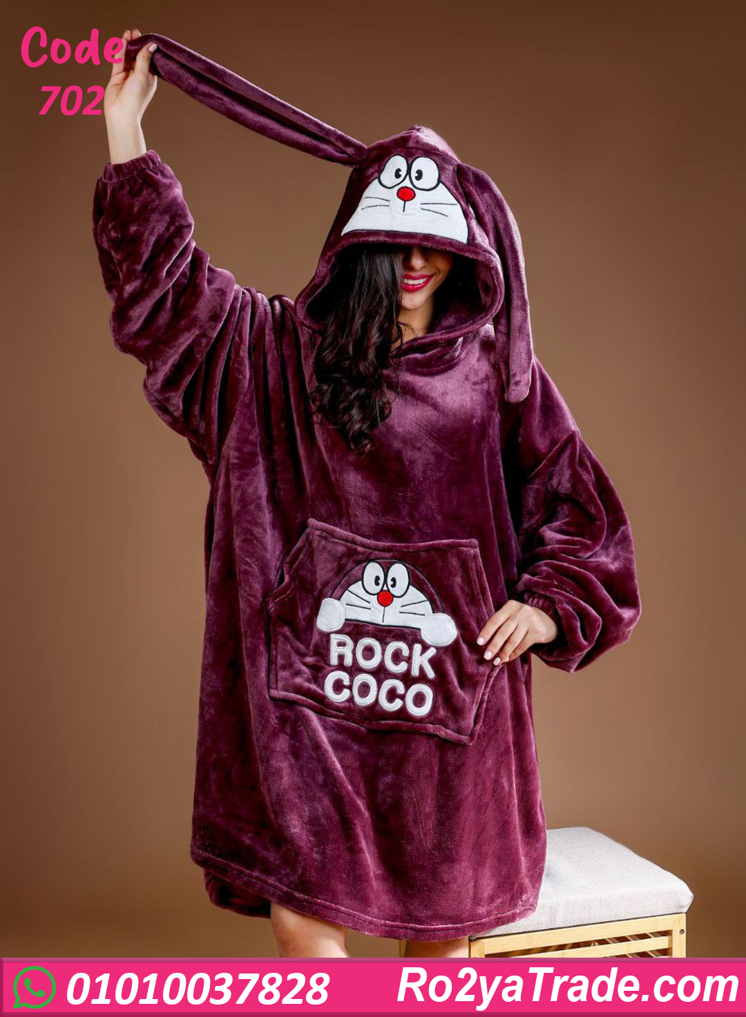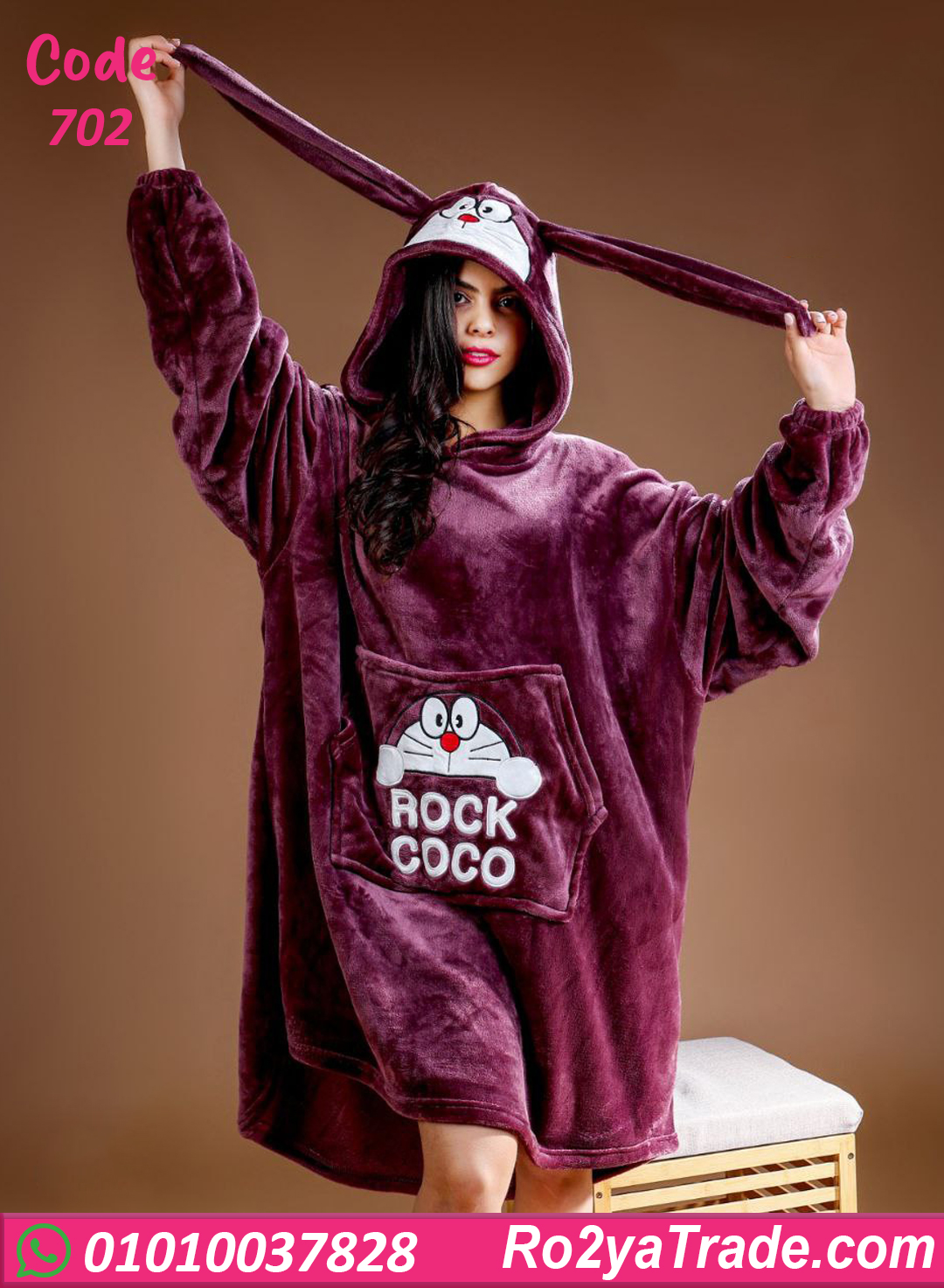 كاش نسائي شتوي بتصميم هودي طويل، خامة فرو تقيلة وناعمة على الجلد، فيها جيب أمامي عملي ورسمة كيوت تضيف شكل شبابي لطيف. التصميم واسع ومريح للحركة وبيوفر إحساس عالي بالدفا، ينفع للبس اليومي في البيت أو القعدة. قطعة عملية وأساسية في شتاء أي ست بتحب الراحة مع شكل شيك.