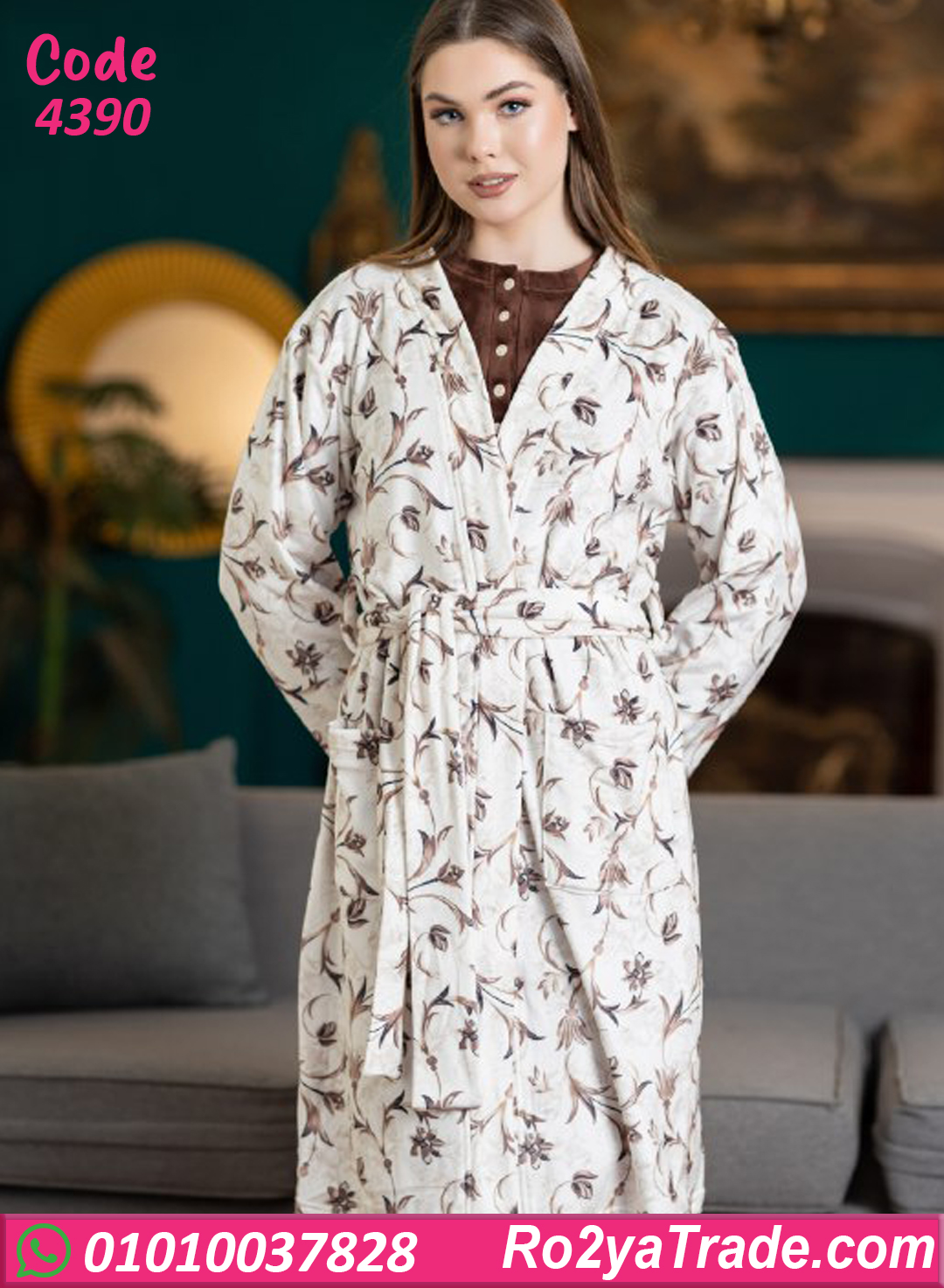 ومعاه كاش/روب مطبوع ستايل شيك يكمّل الشكل ويدي إحساس راحة وفخامة في اللبس. مناسب للبيت وأوقات الراحة في الشتا، تصميم عملي وسهل الحركة مع شكل أنثوي هادي.