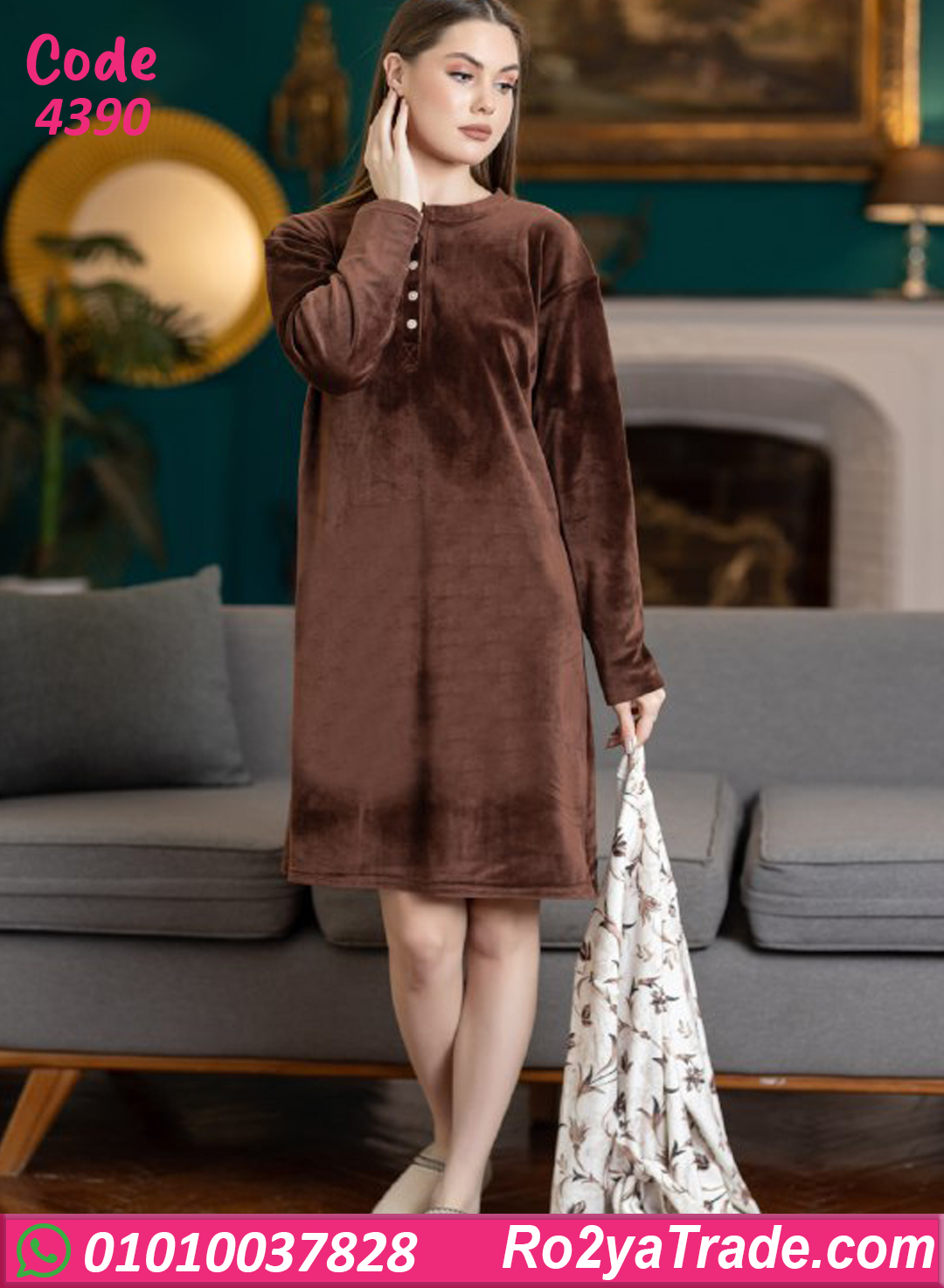 كاش مايوه بيتي شتوي بتصميم أنيق وناعم، مكوّن من فستان بيتي قصير بخامة دافية وناعمة على الجسم