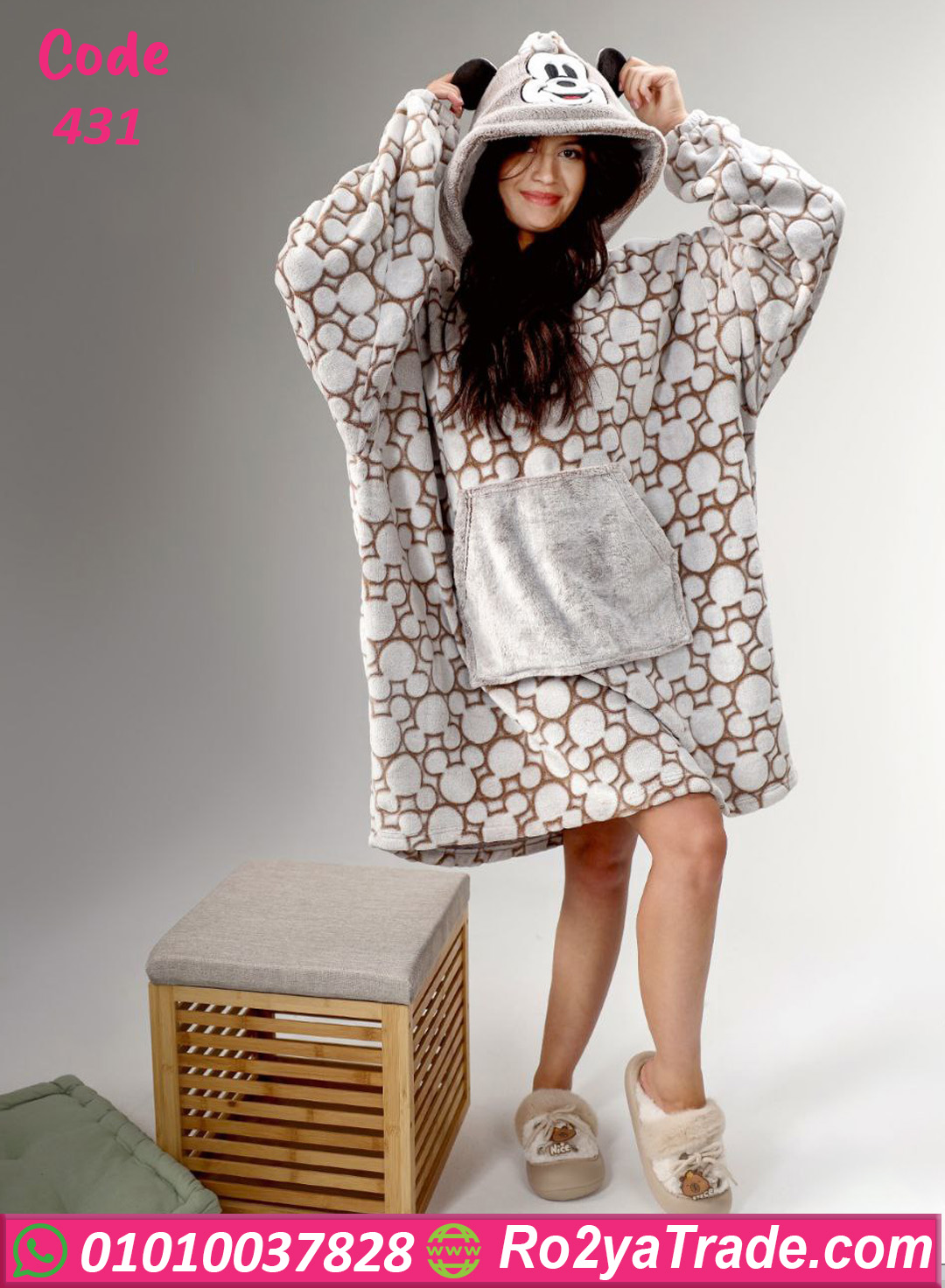 مزود بكابيشو وشكل ميكي ظريف يدي ستايل كيوت ومختلف. مناسب للّبس في البيت، بعد الشاور أو وقت الاسترخاء، قطعة عملية ومحببة لأي ست بتحب الراحة مع لمسة لطيفة. كود 431