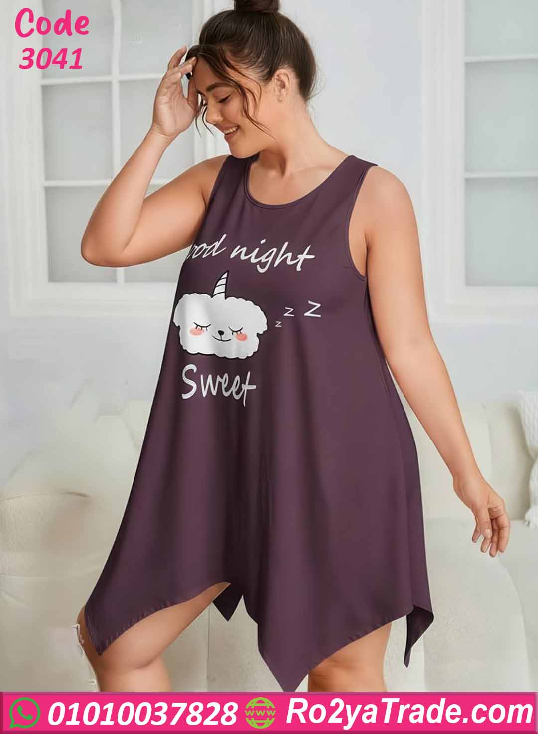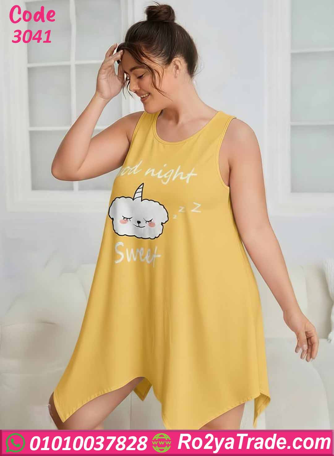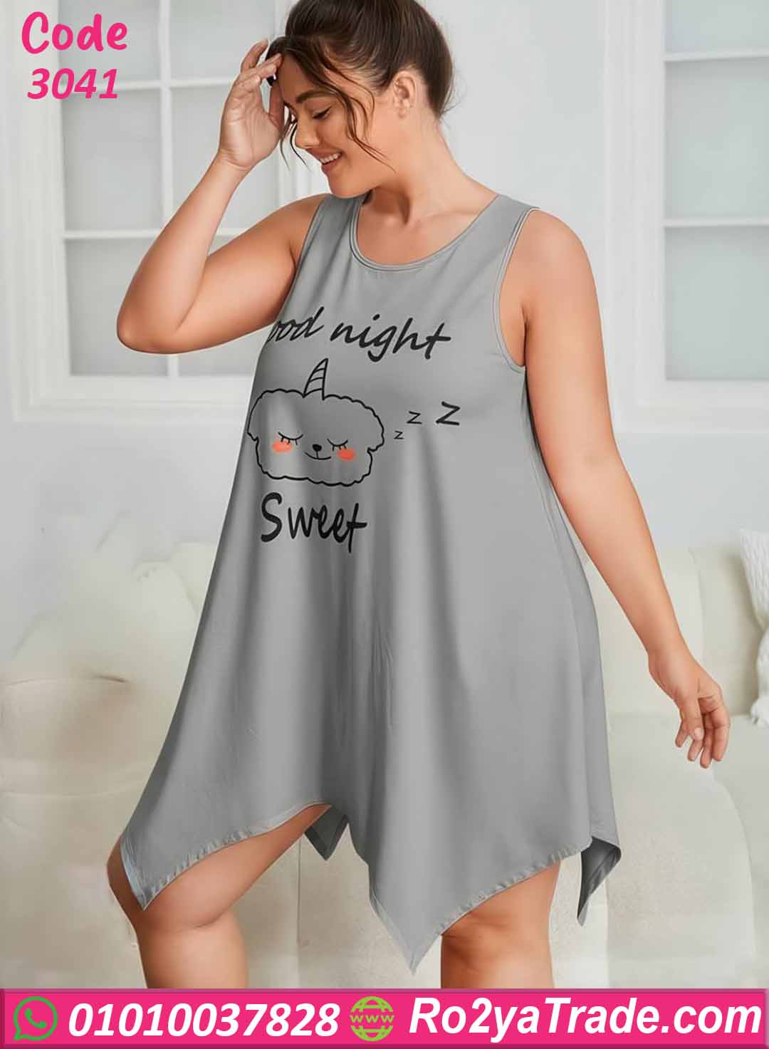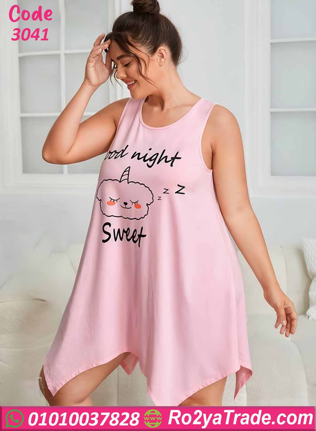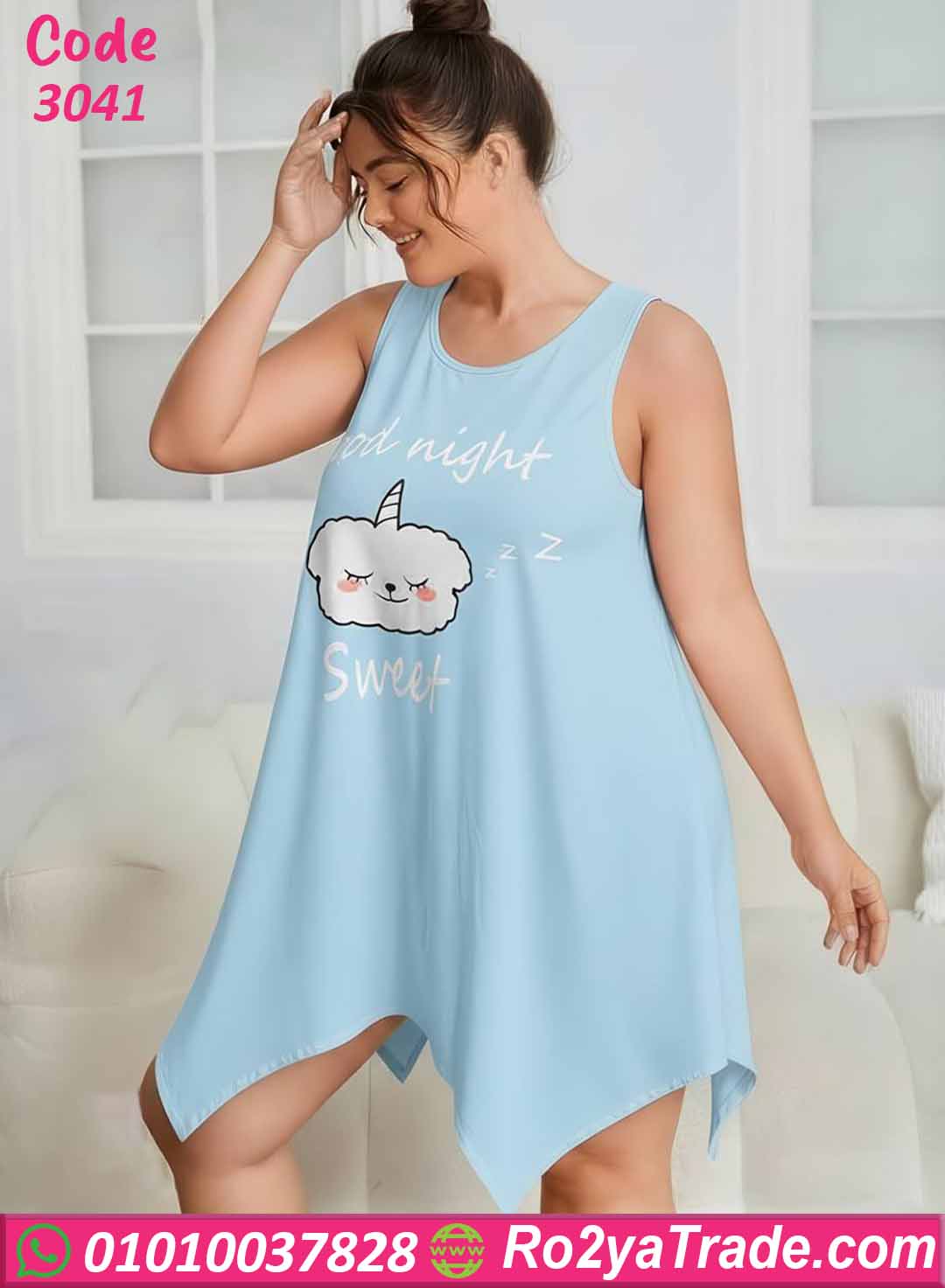 التصميم مزين بطباعة لطيفة في الأمام تحتوي على رسمة سحاب لطيفة مع عبارة Good Night Sweet تضيف لمسة مرحة وأنثوية للموديل.