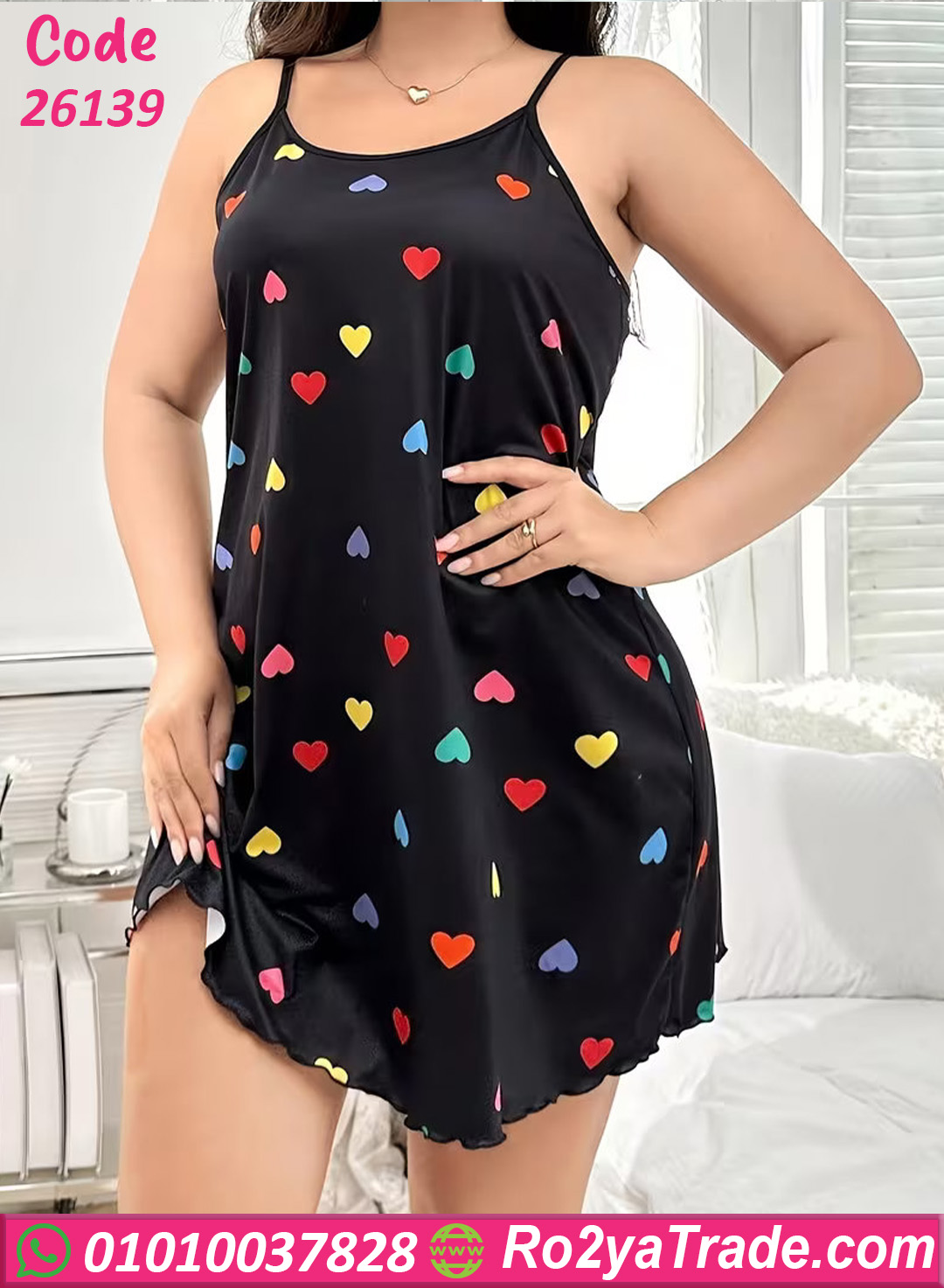 كاش حريمي صيفي بيج سايز بتصميم بسيط وجذاب بطبعات قلوب ملونة، يمنحك إطلالة مرحة ومريحة داخل المنزل أو على البحر.