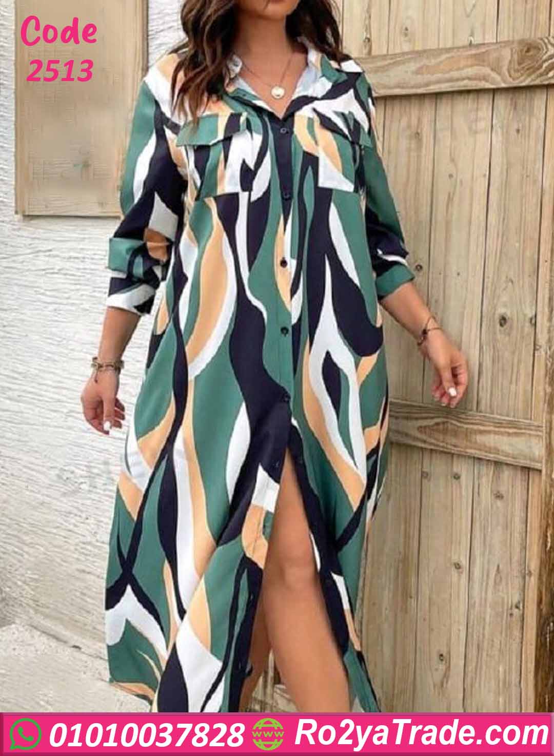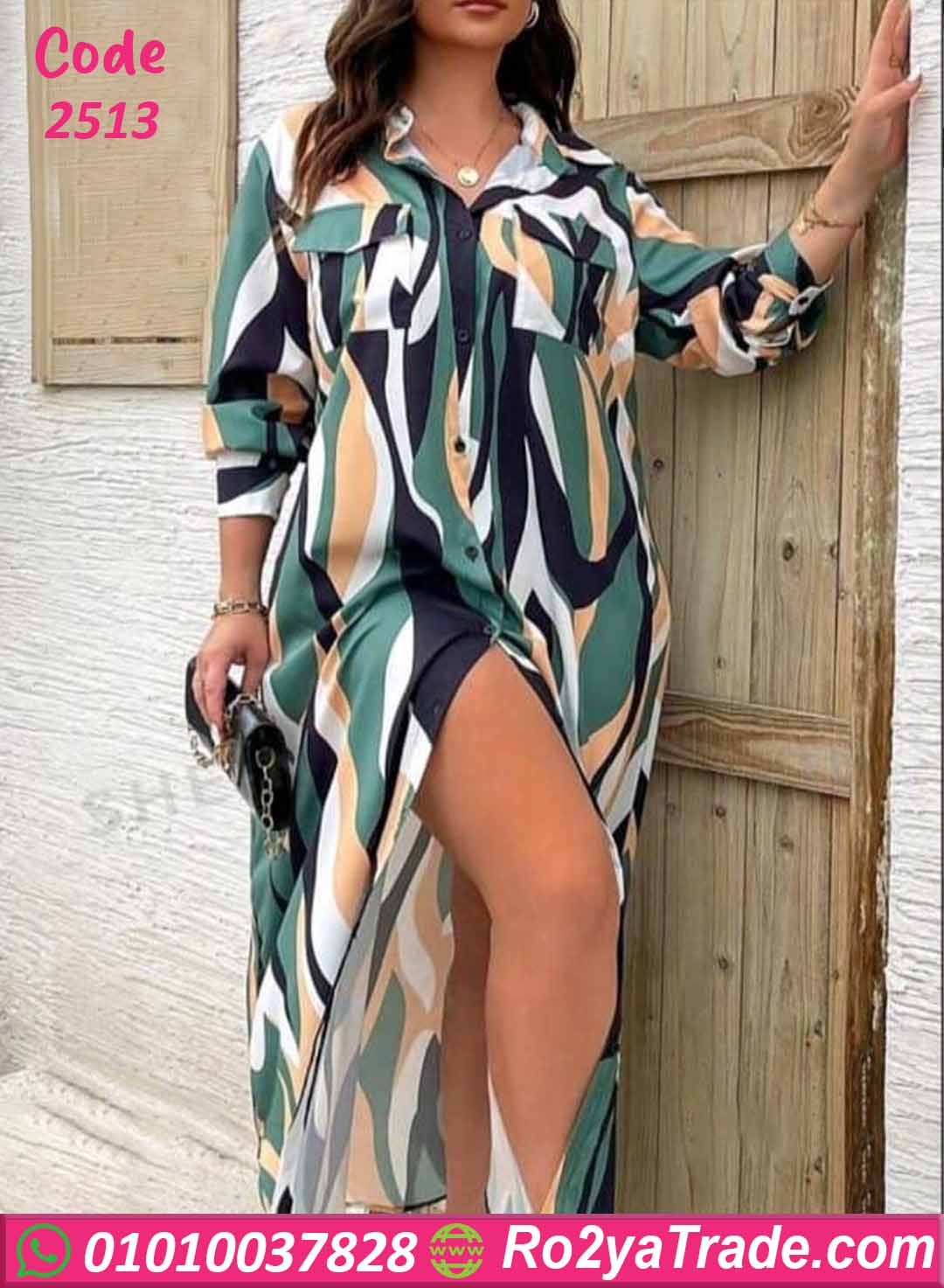 الموديل عبارة عن قميص طويل مفتوح بأزرار من قدام،