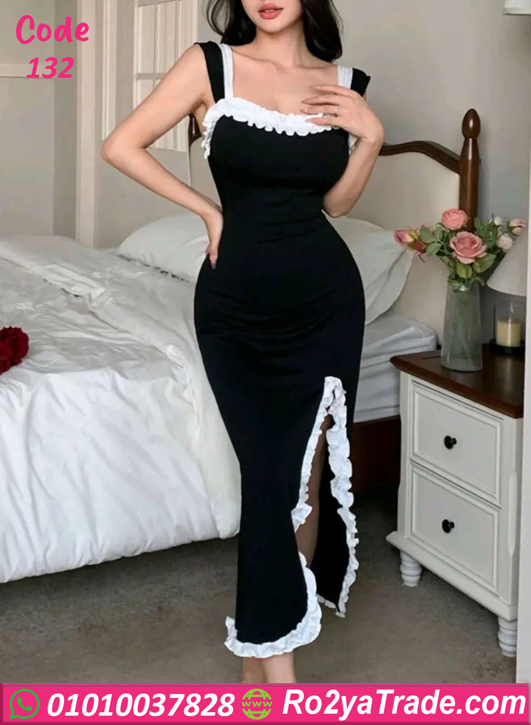 الفتحة الجانبية الطويلة بتدي لمسة جاذبية، والموديل مناسب لأيام الصيف وللبيت أو حتى بعد المايوه عالبحر 🌴