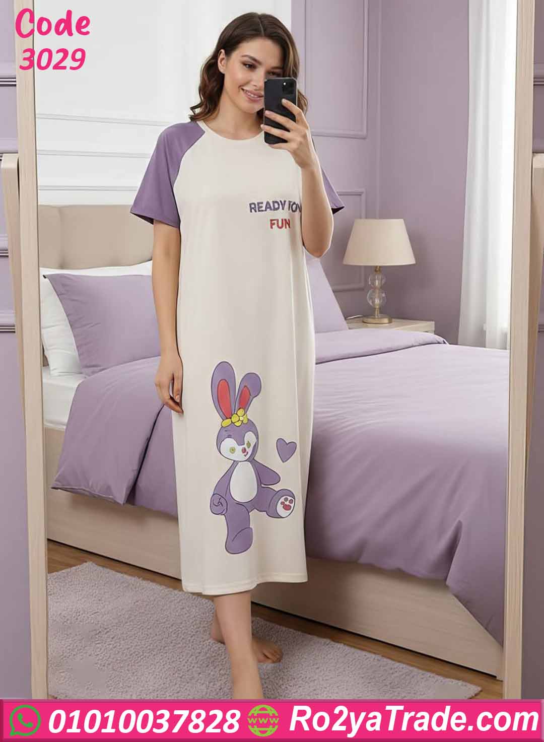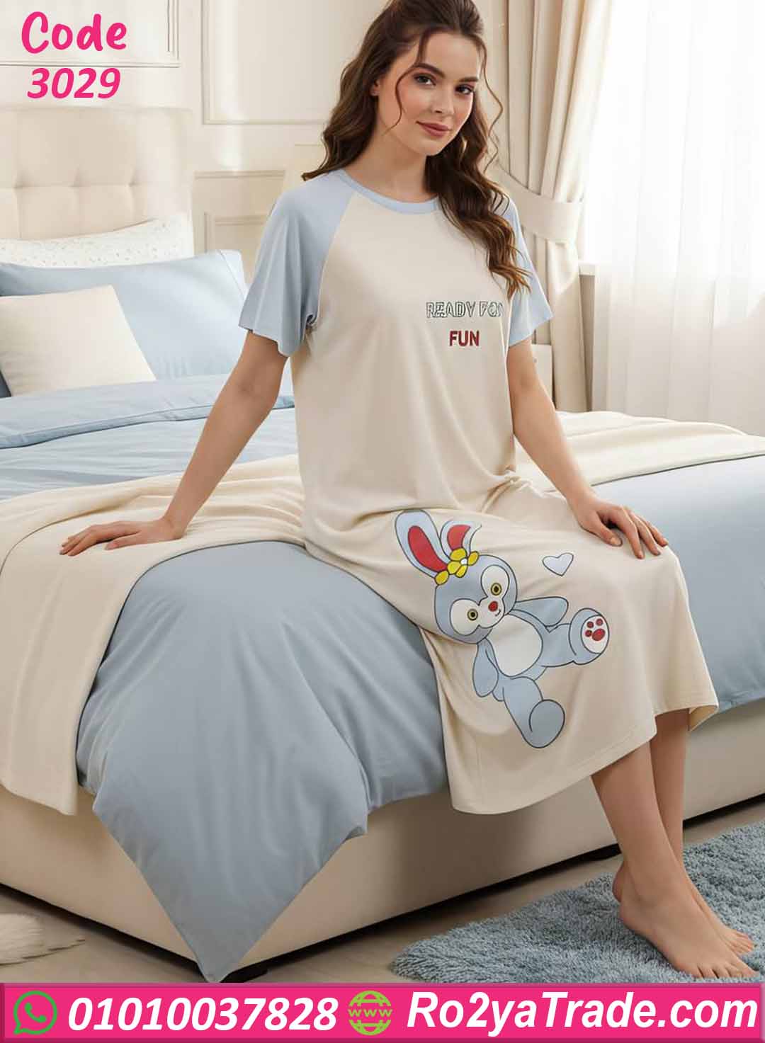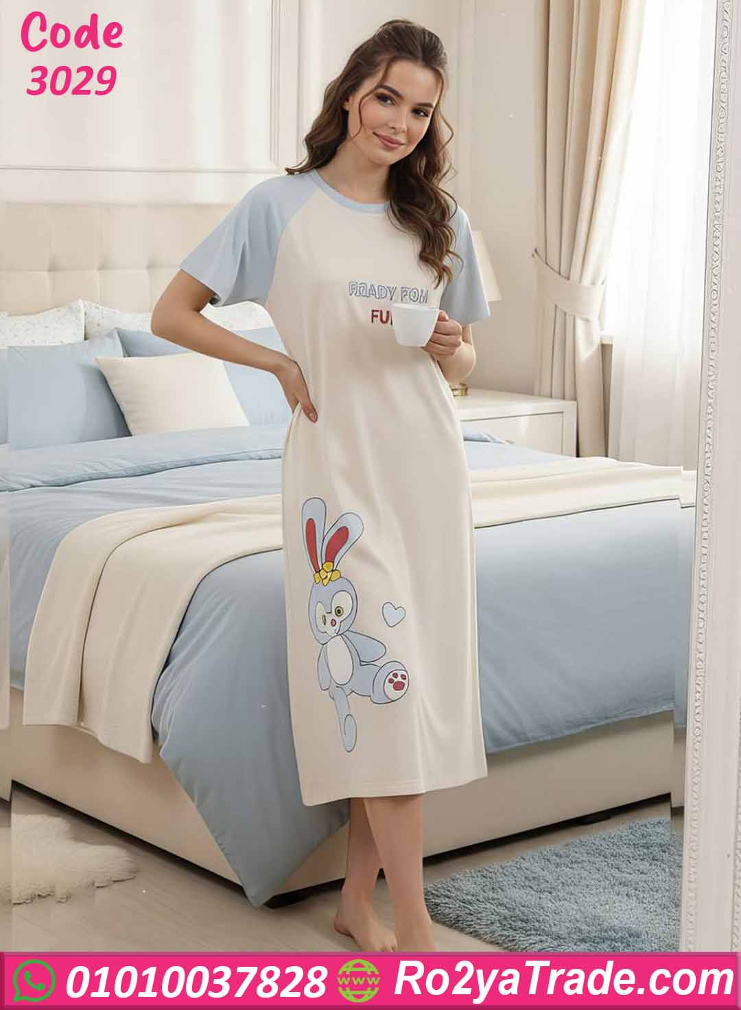 كما توجد رسمة أرنب كيوت أسفل الموديل تضيف لمسة لطيفة تجعل القطعة مناسبة لمحبات الإطلالات البسيطة والمرحة.