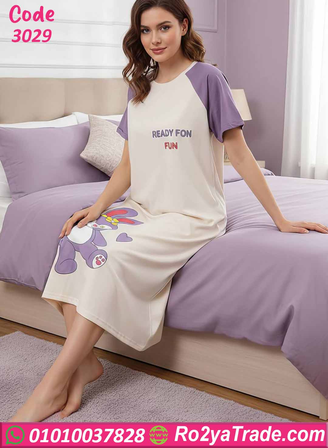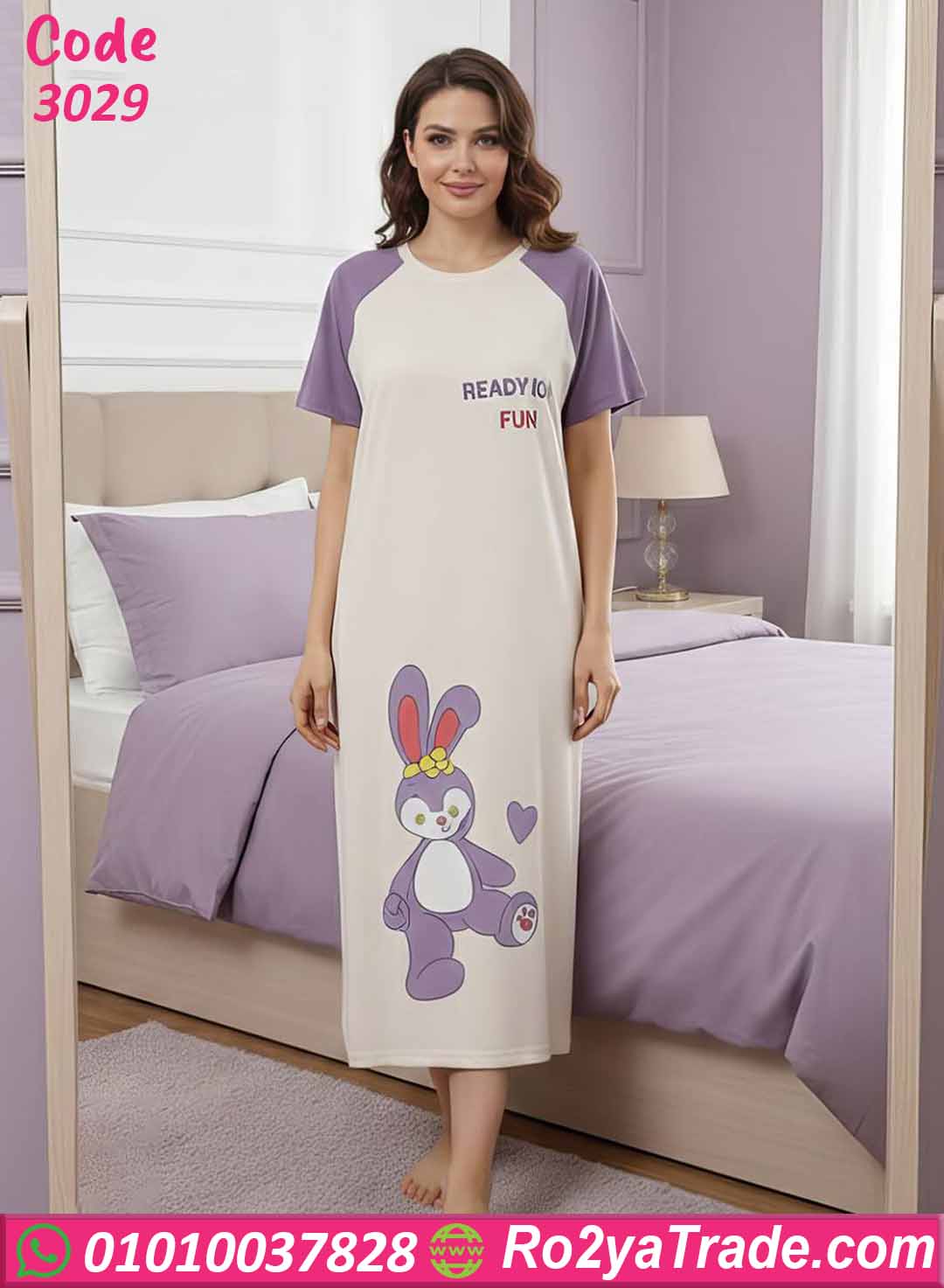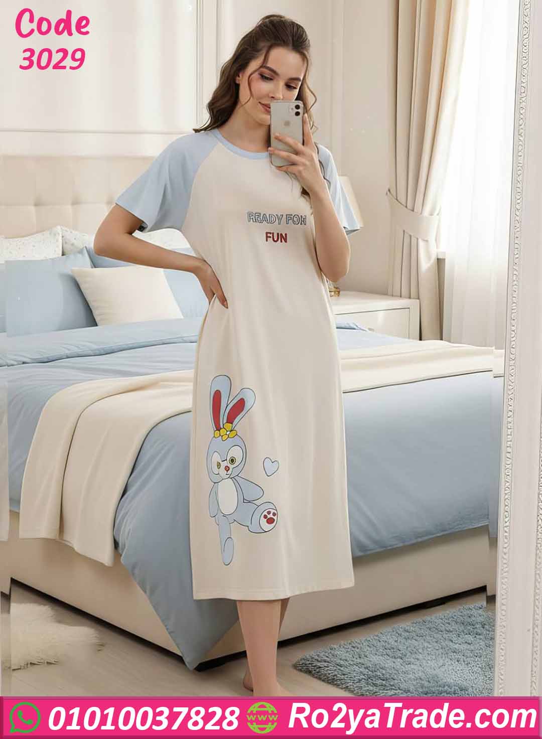 كما توجد رسمة أرنب كيوت أسفل الموديل تضيف لمسة لطيفة تجعل القطعة مناسبة لمحبات الإطلالات البسيطة والمرحة.