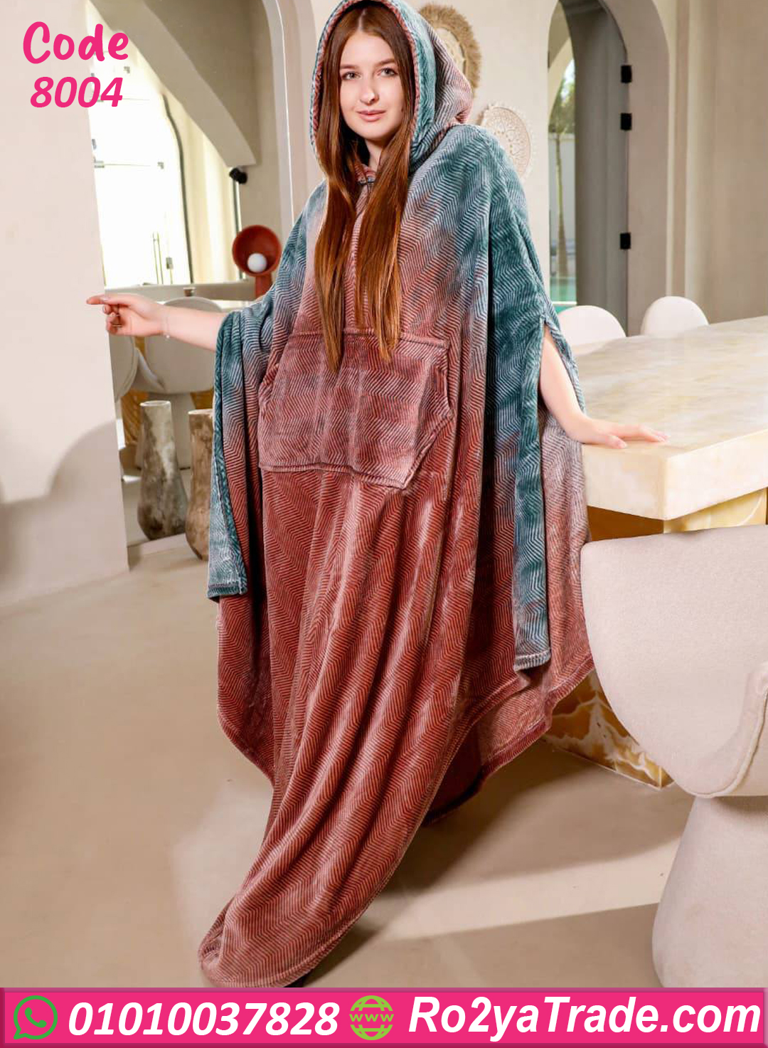 كاش مايوه شتوي قطيفة بغطاء رأس – كود 8004
