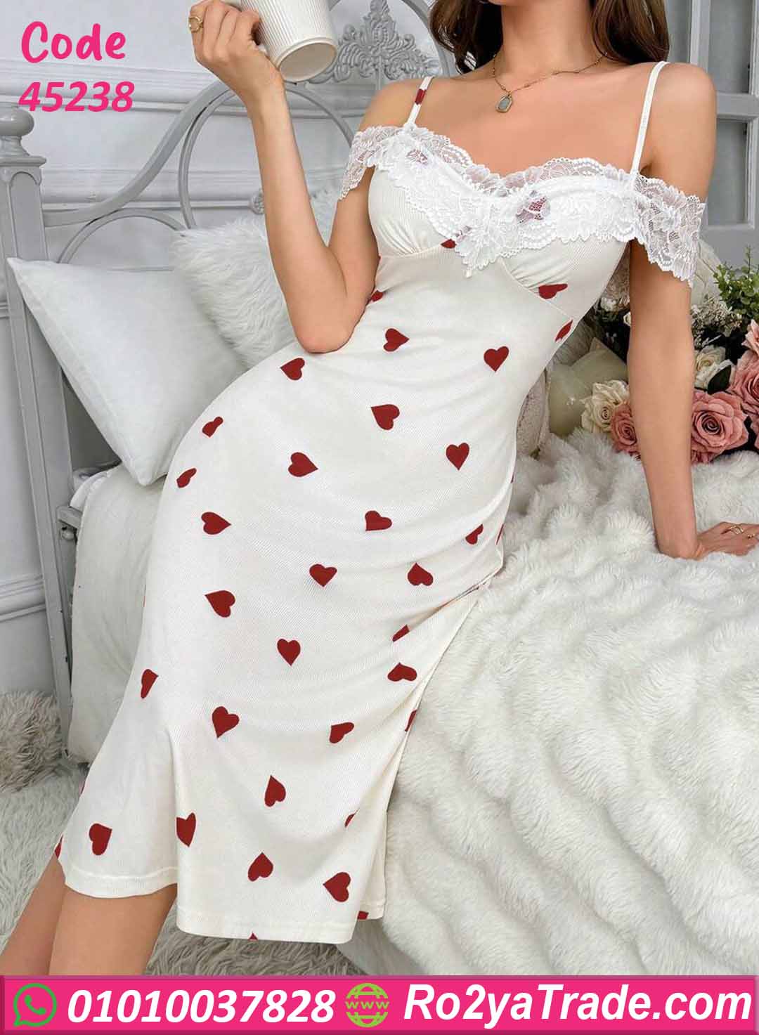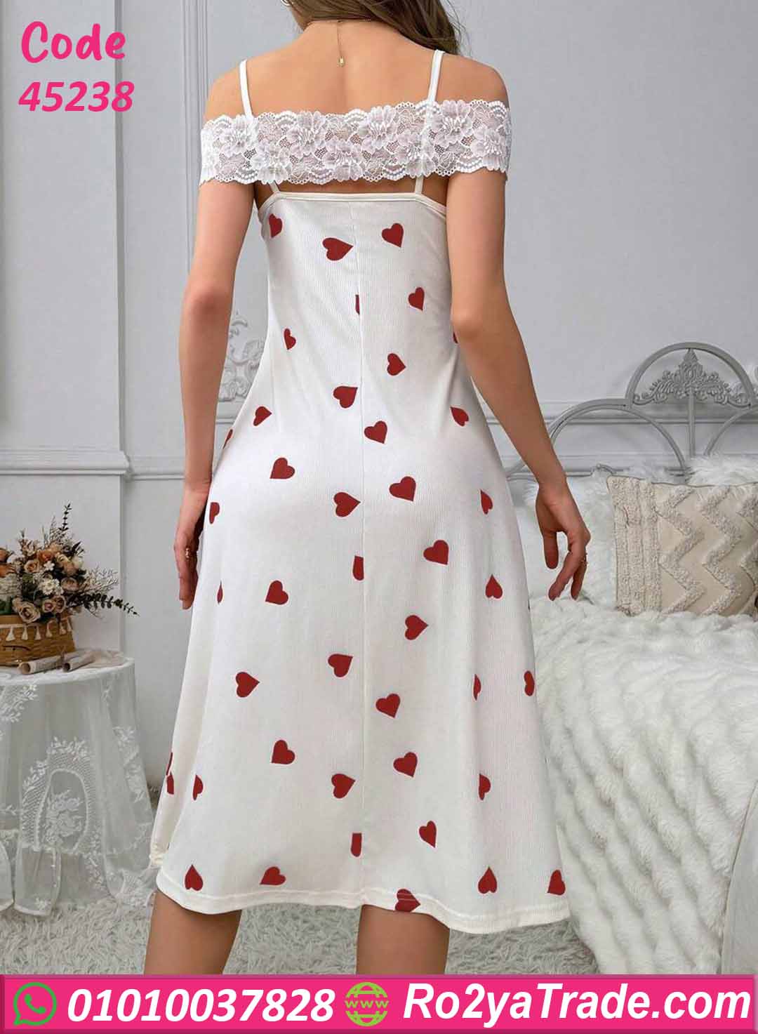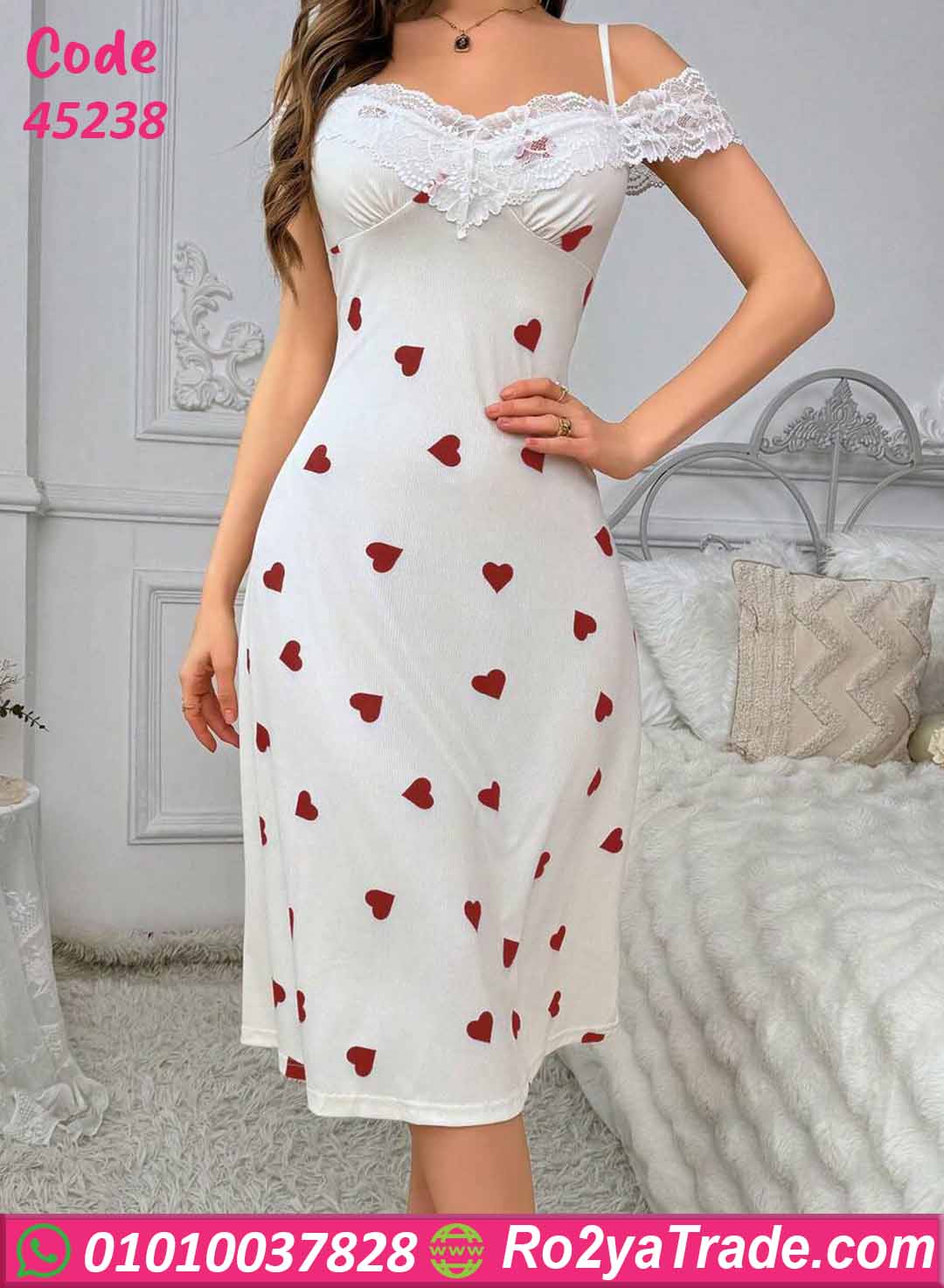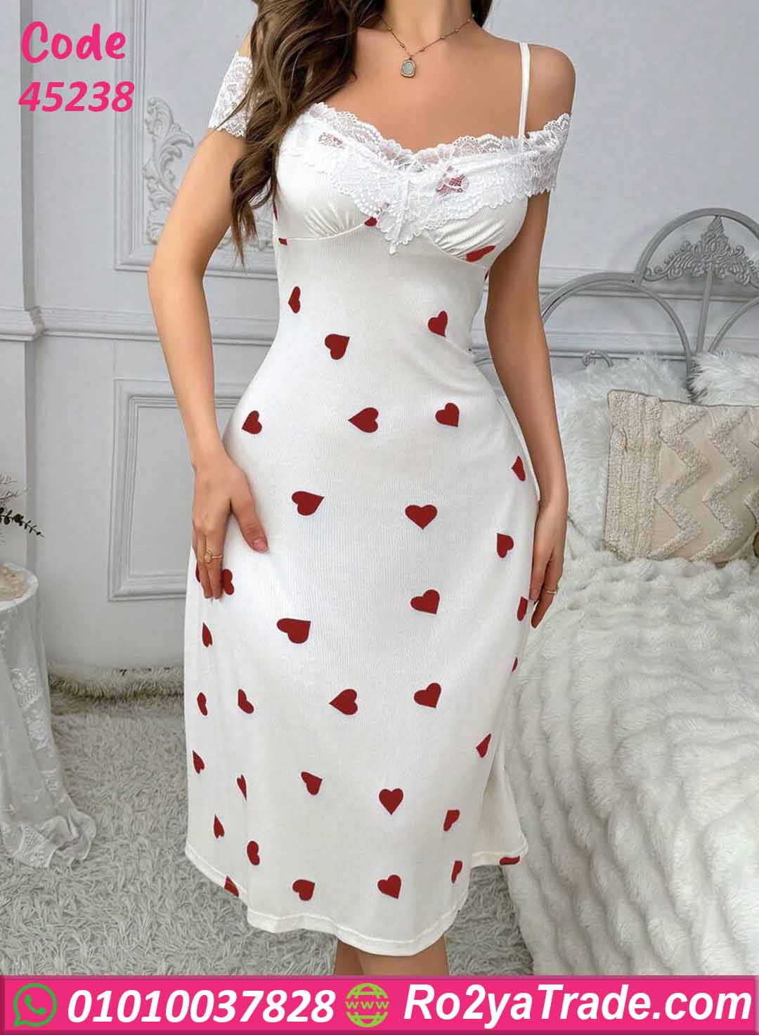 كاش مايوه صيفى باللون الأبيض مزين بطبعة قلوب حمراء صغيرة تضيف طابع رومانسي جذاب. تصميم بأوف شولدر مع دانتيل أبيض على الصدر يبرز الأنوثة بشكل راقي وناعم، مع حمالات رفيعة لمزيد من الثبات والشكل الأنيق. خامة خفيفة ومريحة مناسبة للبيت أو للخروجات الصيفية الهادية، وتديكي إحساس بالراحة والدلع طول اليوم.