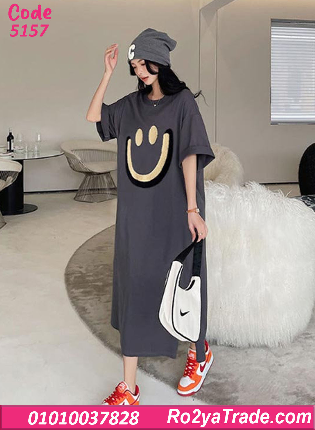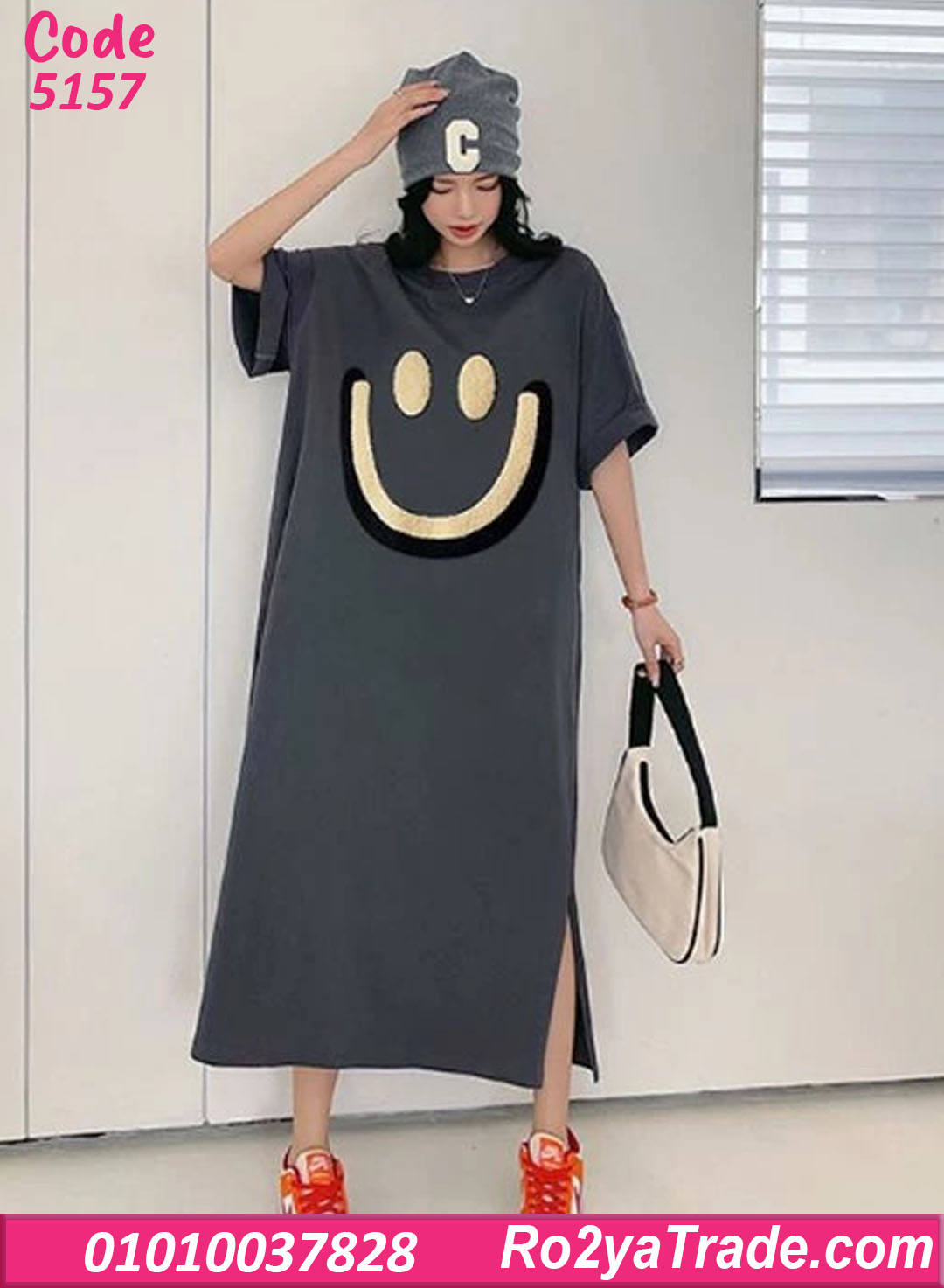 كاش حريمي صيفي طويل بتصميم كاجوال عصري يمنحك إطلالة مريحة وشيك في نفس الوقت. يتميز بطبعة مبتسمة جذابة تضيف لمسة مرحة لإطلالتك اليومية.