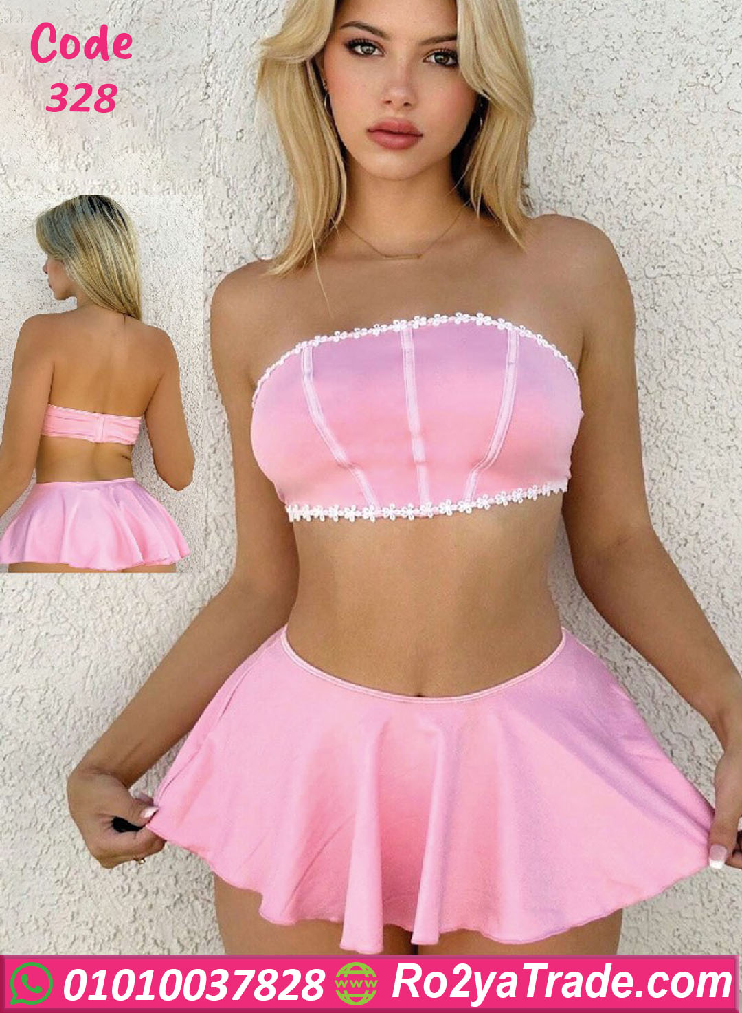 طقم سكسي قصير بكم واحد مرصع فصوص – كود 355