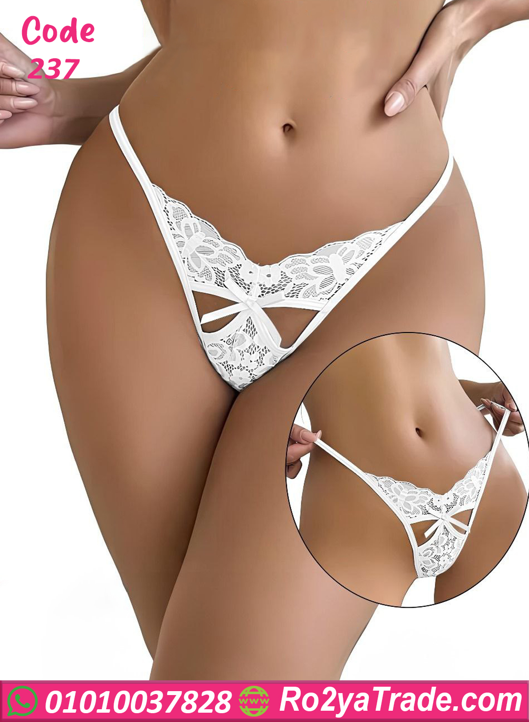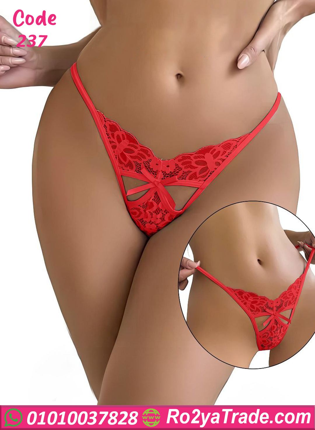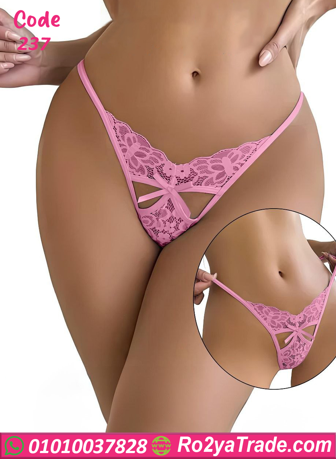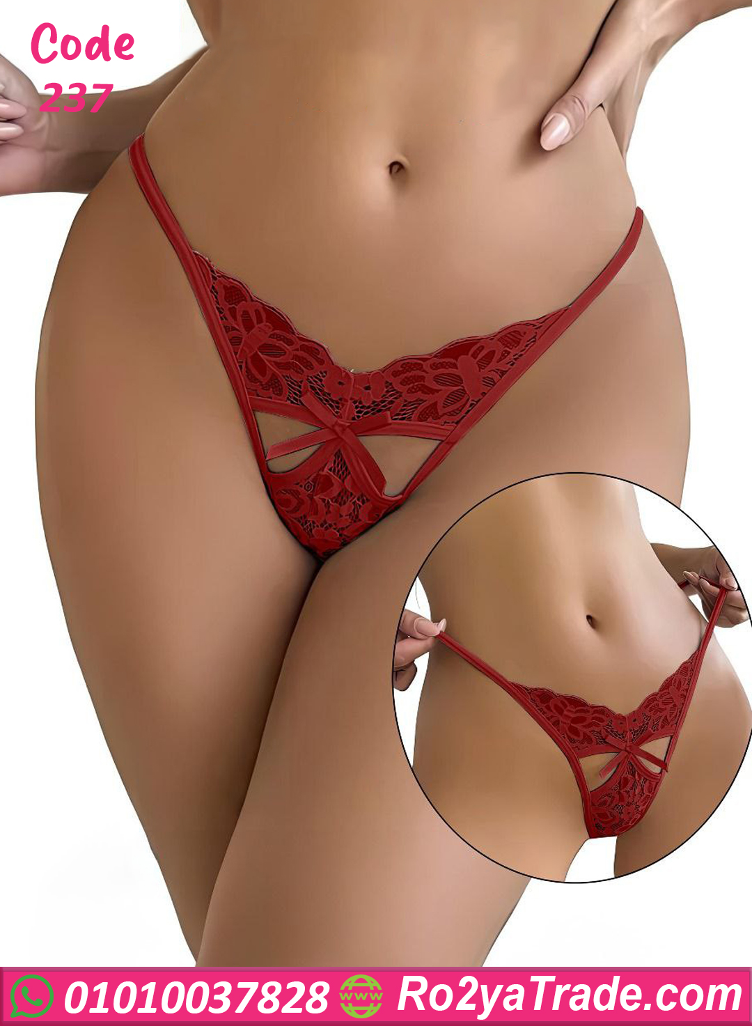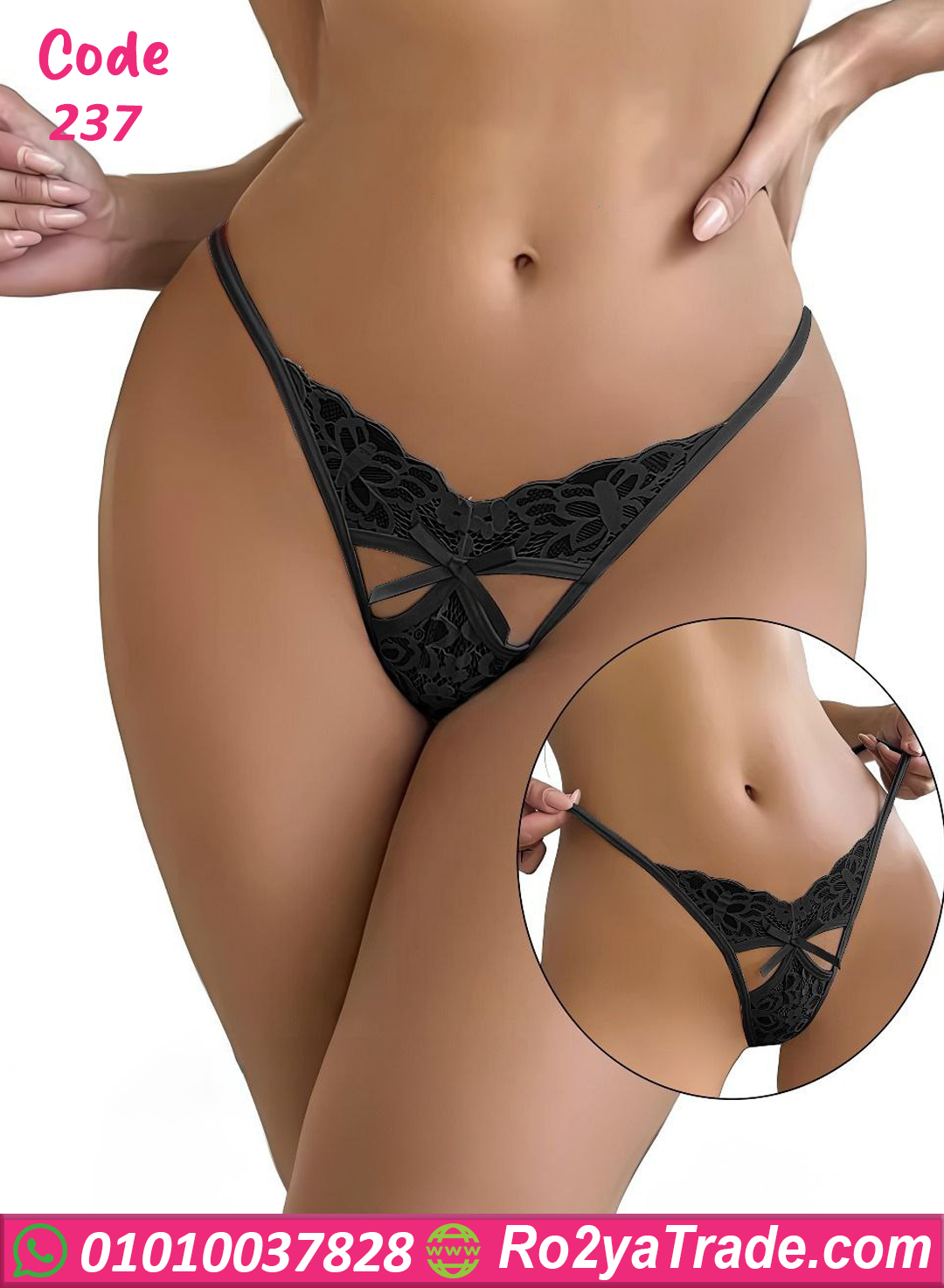 كلوت داخلي حريمي مصنوع من دانتيل ناعم عالي الجودة، تصميم مفتوح من الأمام مع تفاصيل شرايط وفتحة جذابة بتبرز الأنوثة وتدي إحساس مختلف. الخامة مريحة وخفيفة على الجسم، مثالي للاستخدام الخاص واللحظات المميزة.