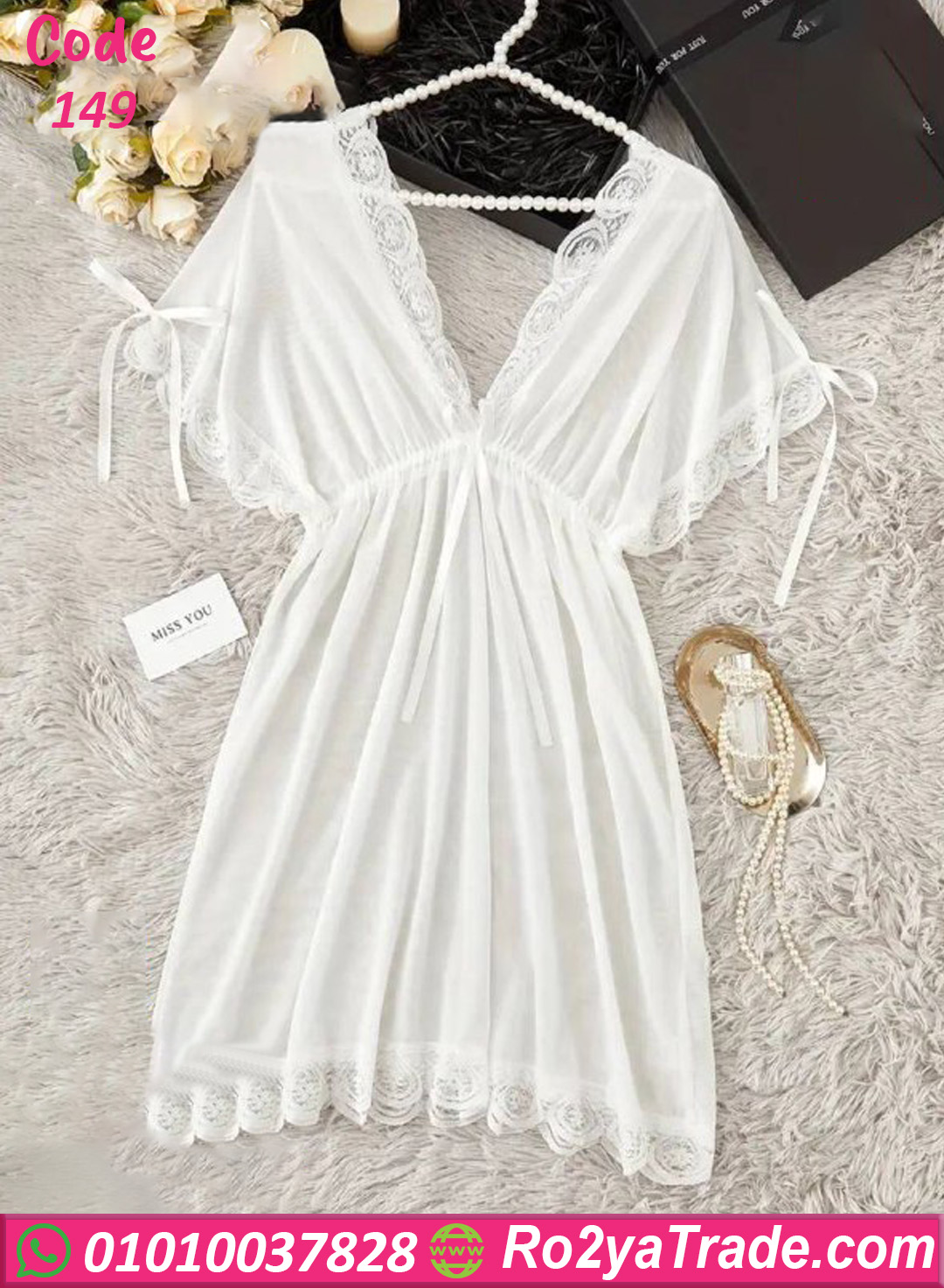اطلبي الآن لانجري أبيض دانتيل كود 149 بأفضل سعر