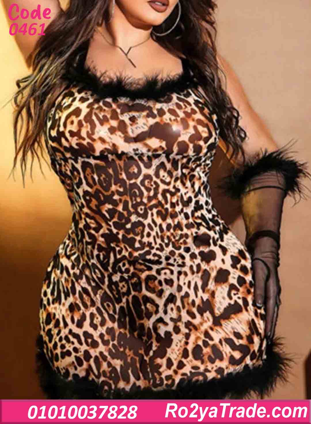لانجري قصير بطبعة تايجر جريئة مع لمسة فرو ناعمة لإطلالة قوية وأنثوية مميزة للبيج سايز.