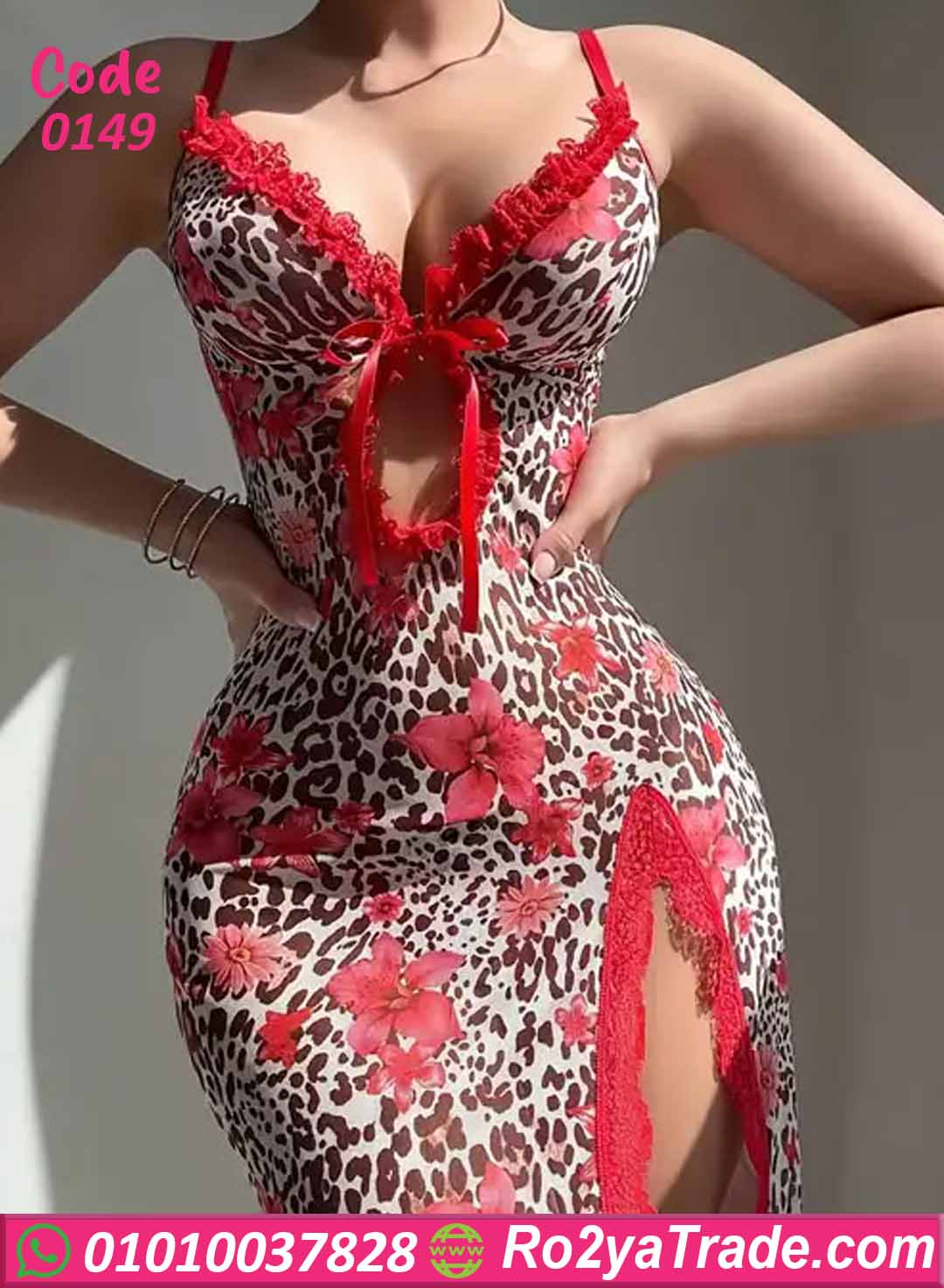 لانجري حريمي طويل بنقشة تايجر مع تفاصيل دانتيل أنيقة وفتحة جانبية جذابة تمنحك إطلالة أنثوية جريئة ومميزة.