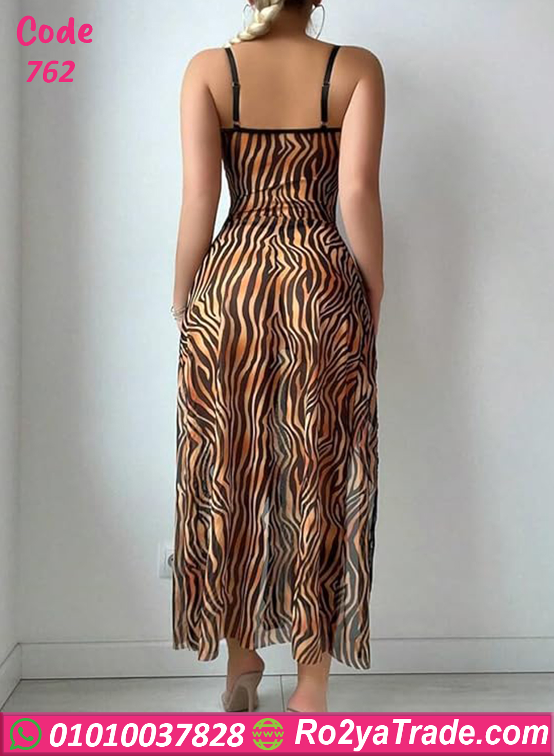 تصميم مميز بخطوط النمر الجذابة وتطريز دانتيل أسود بيبرز جمال الجسم بشكل أنثوي ومتناسق.