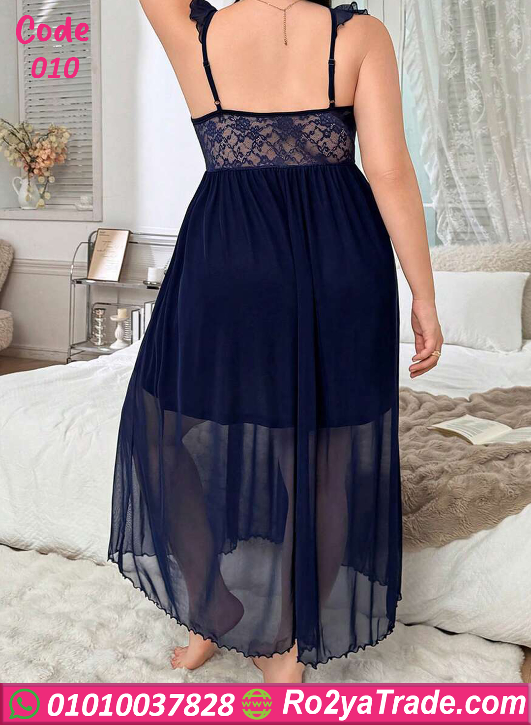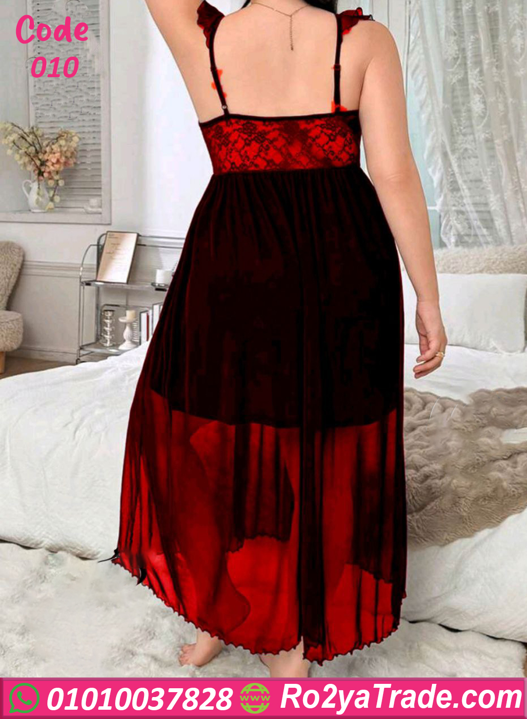 الموديل تصميمه شيك جدًا، الجزء العلوي دانتيل ناعم مع فيونكة صغيرة بتدي لمسة دلع، والجزء السفلي شفاف خفيف بيتحرك بانسيابية وجاذبية 👗