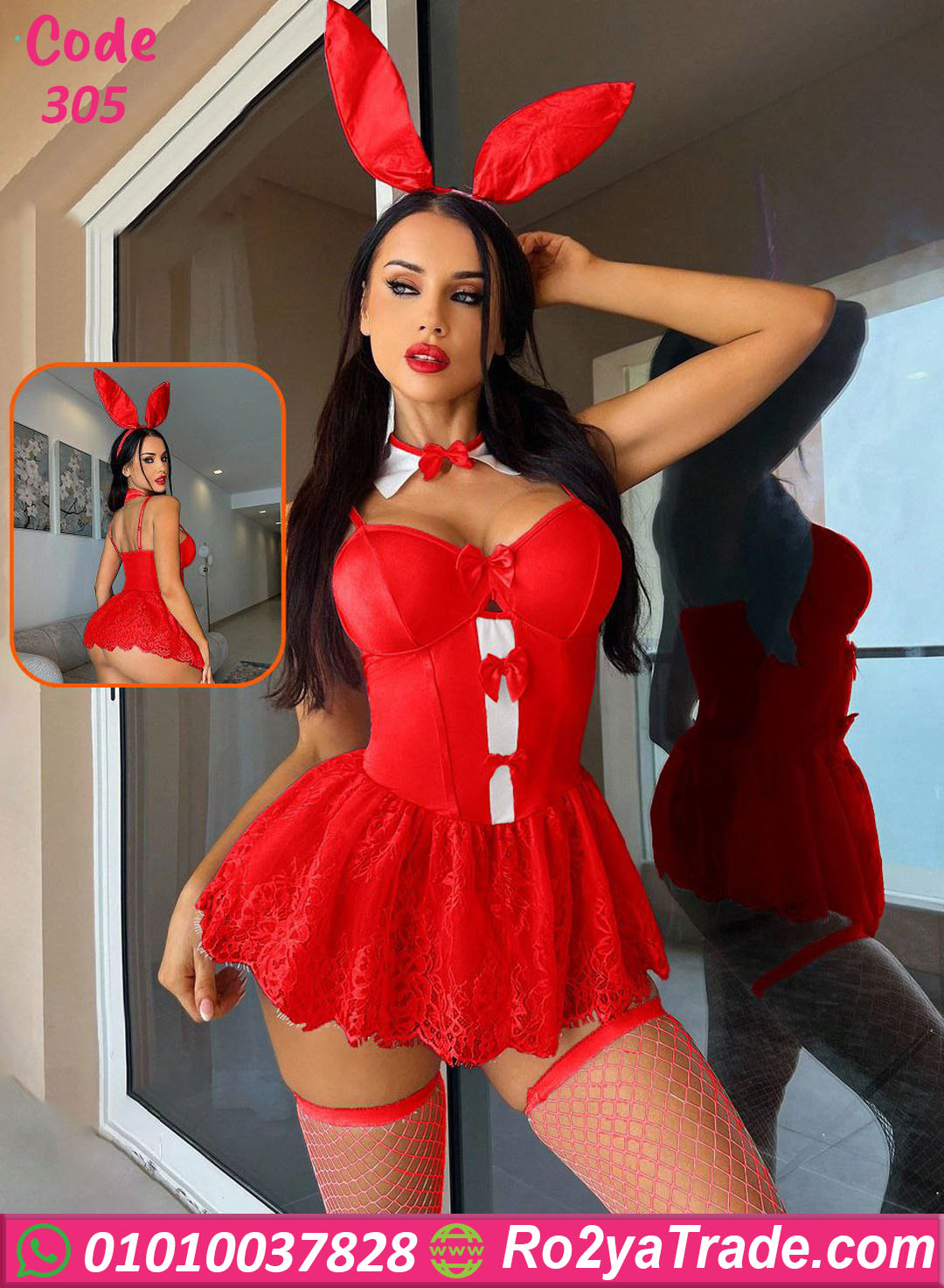 لانجري حريمي تنكري بتصميم الأرنب الجذاب مع تنورة دانتيل قصيرة وتفاصيل أنيقة يمنحك إطلالة أنثوية جريئة ومميزة.