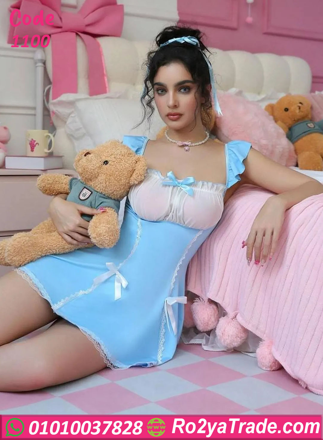 خلي أنوثتك تتكلم مع لانجري تنكري قصير كود 1100 اللي بيجمع بين الجمال والنعومة 💙