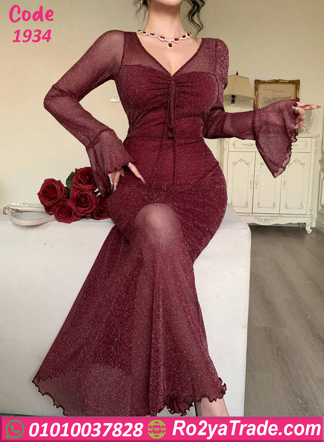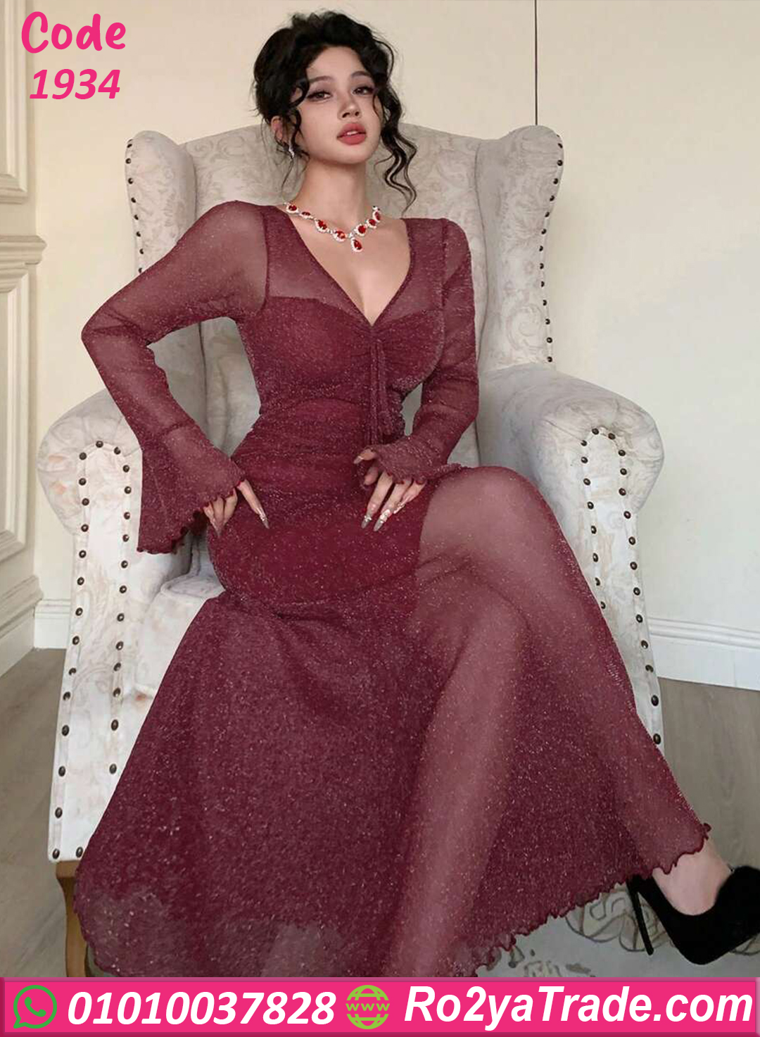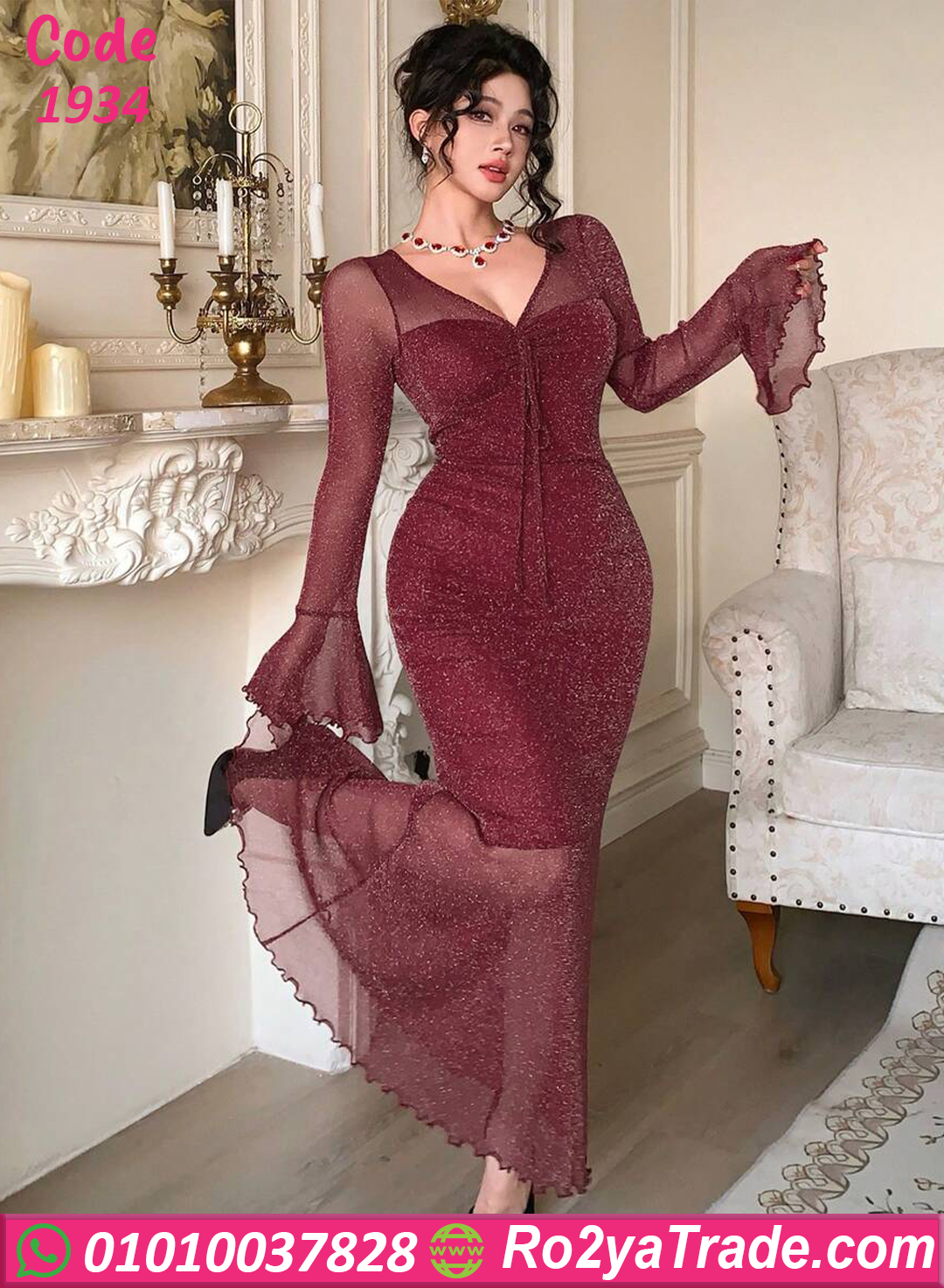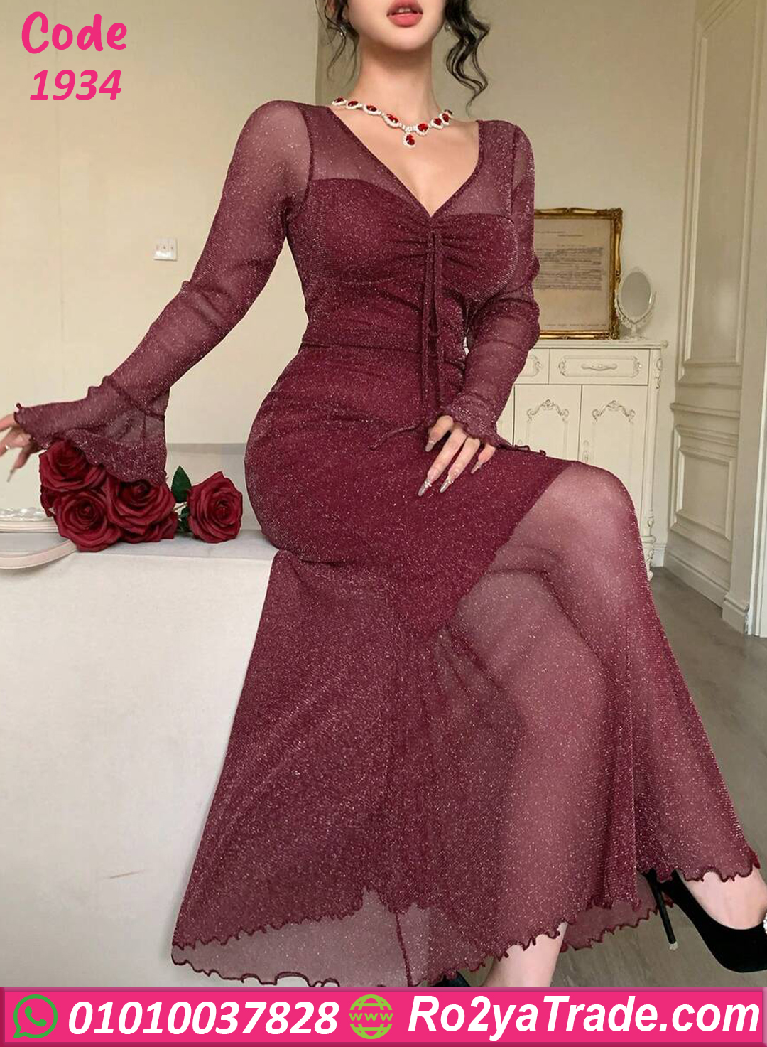 لانجري حريمي طويل بتصميم أنيق بكم شفاف ولمعة جذابة يمنحك إطلالة أنثوية راقية ومميزة.