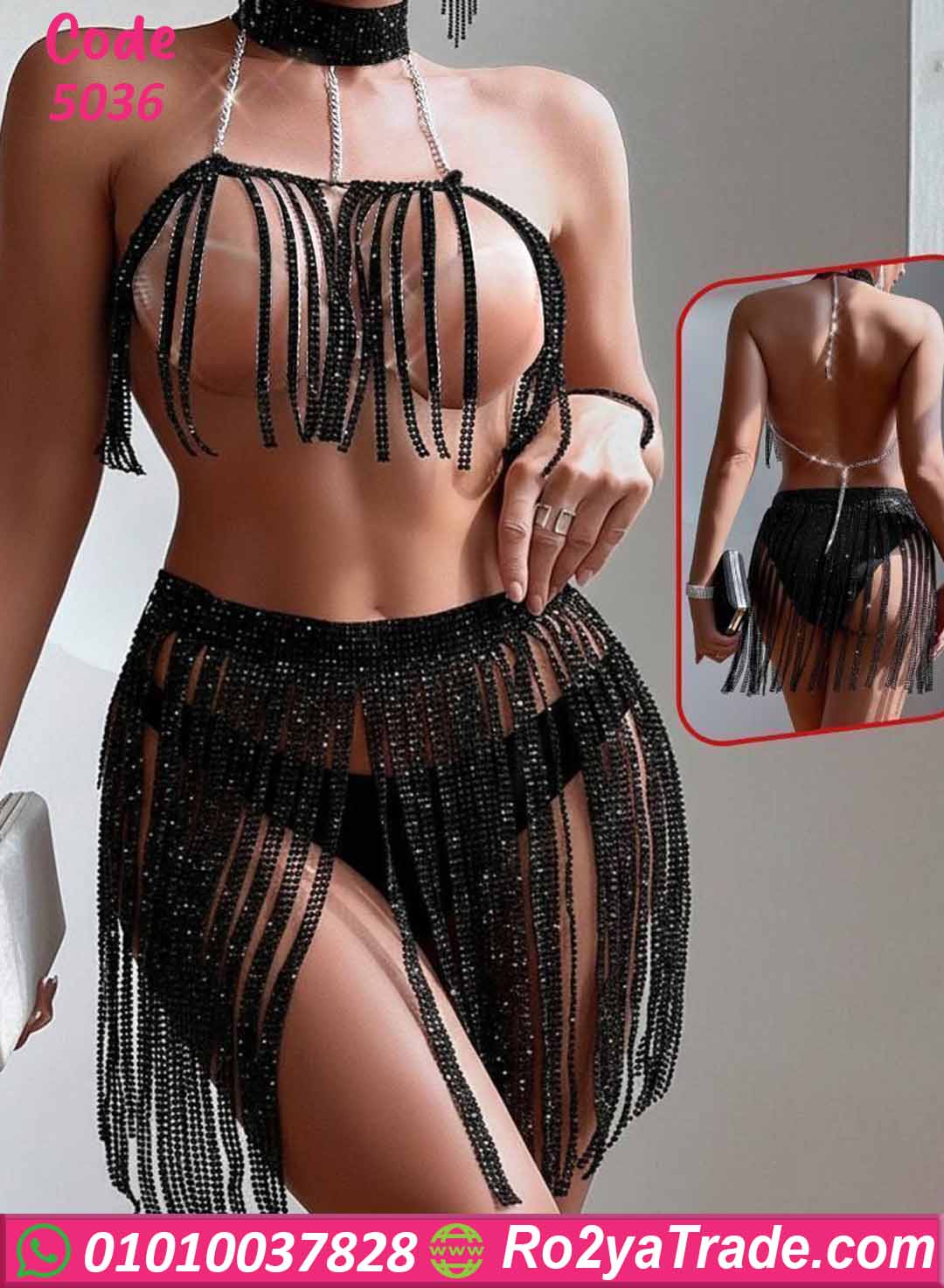 لانجري خرز ميني جيب 5036 من Hot Night تصميم مميز جدًا عبارة عن طقم قطعتين من خرز أسود متدلي بيلف الجسم بشكل جذاب.