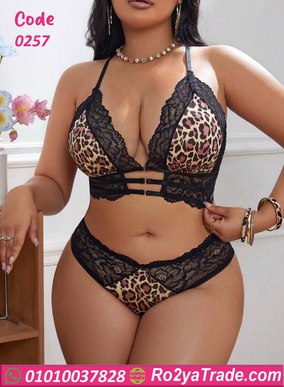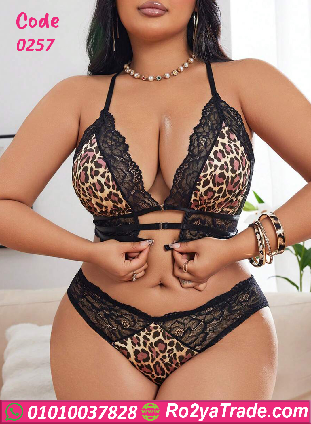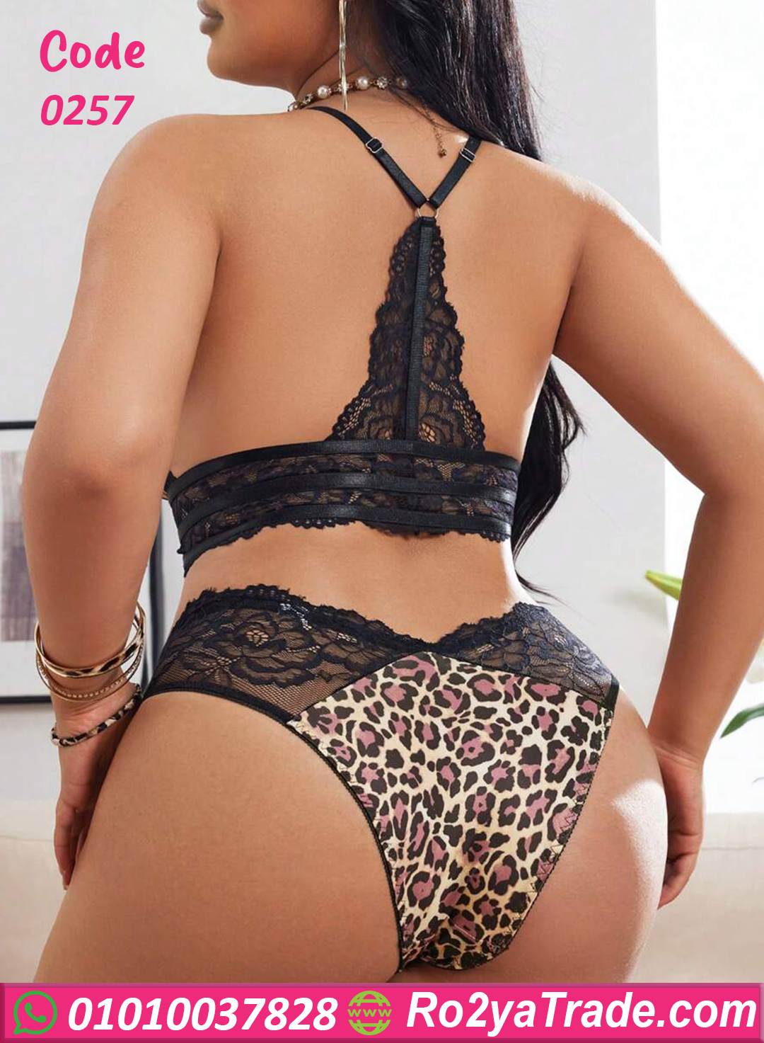 الطقم بيجمع بين خامة الدانتيل الناعمة وتفاصيل الليوبارد الجريئة اللي بتديك مزيج بين الإغراء والفخامة في نفس الوقت 🔥