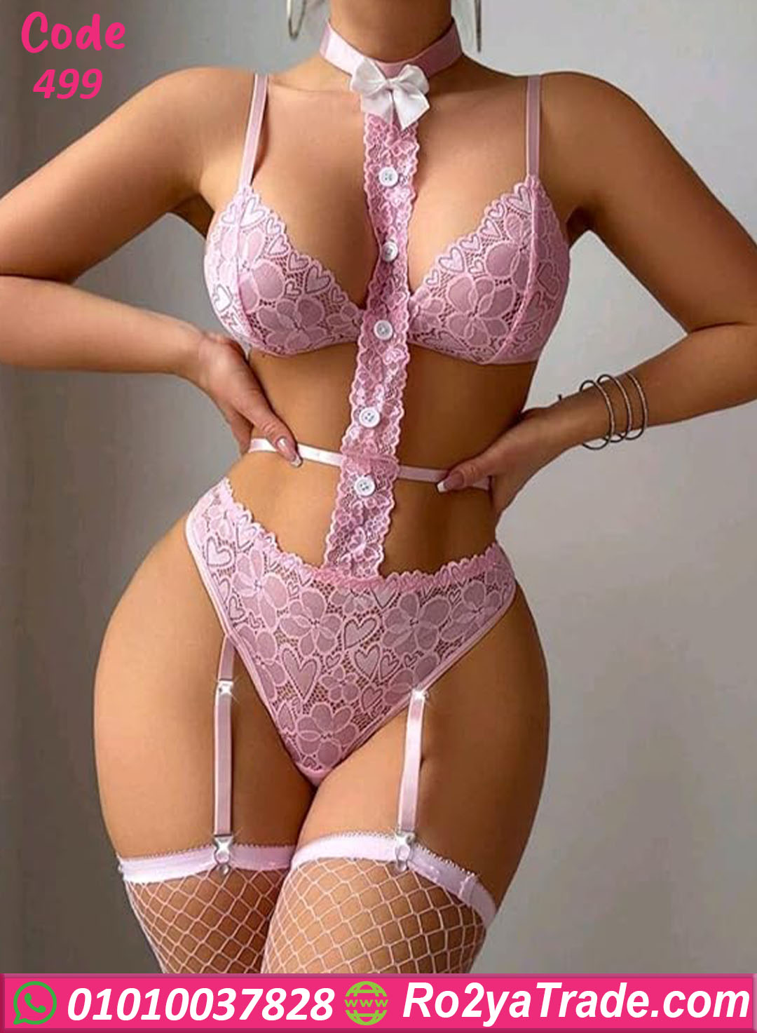 الموديل يأتي بتصميم سلوبت أنيق مكون من برا دانتيل وبانتي متصل بتصميم جذاب يبرز جمال القوام.
