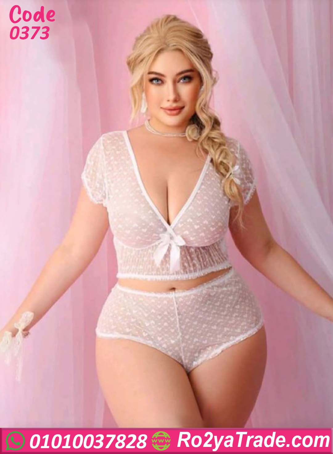لانجري حريمي قصير بتصميم أنيق وناعم من الدانتيل الشفاف، يتكون من قطعتين تمنحك إطلالة أنثوية جذابة ومريحة في نفس الوقت.