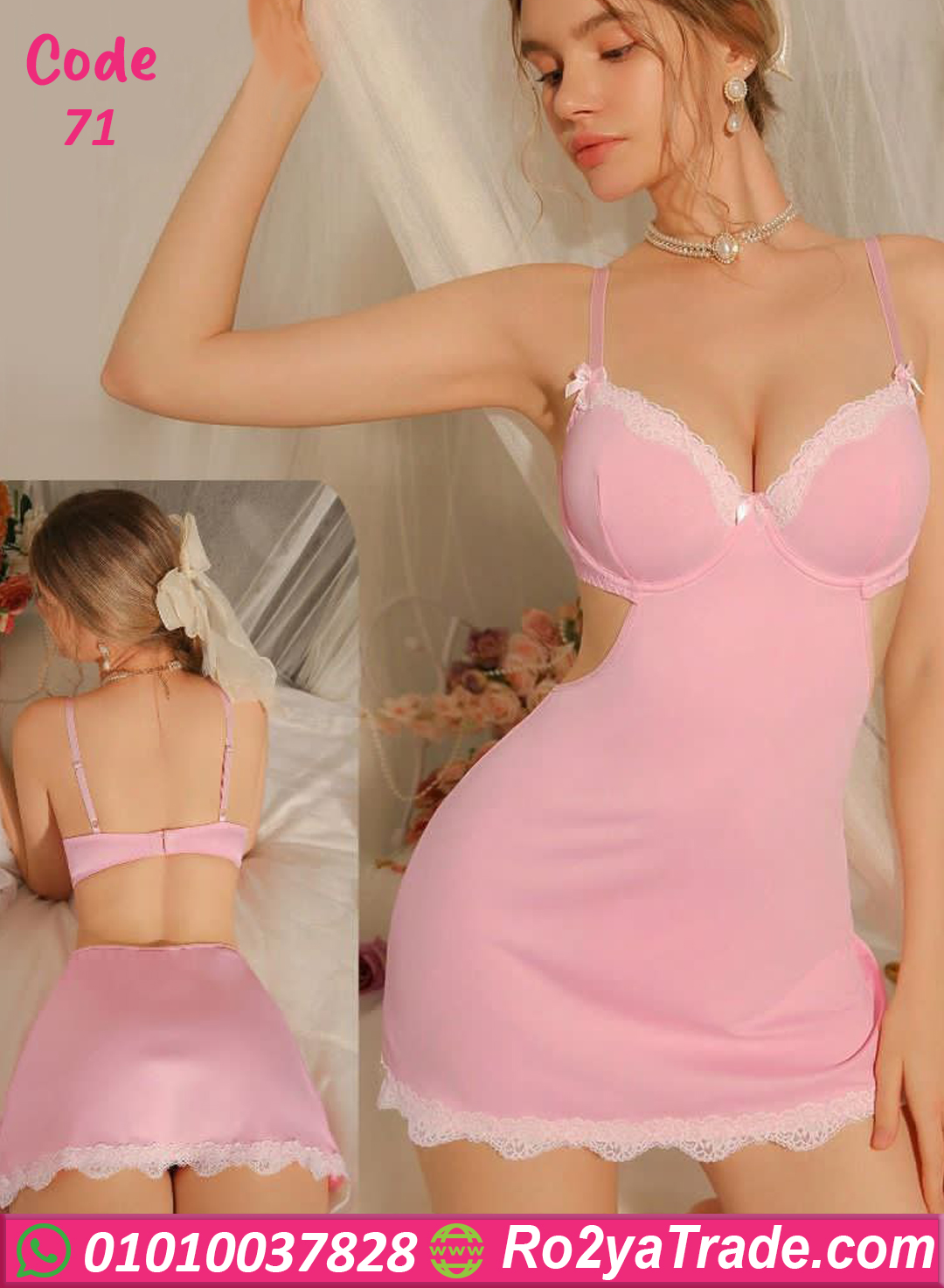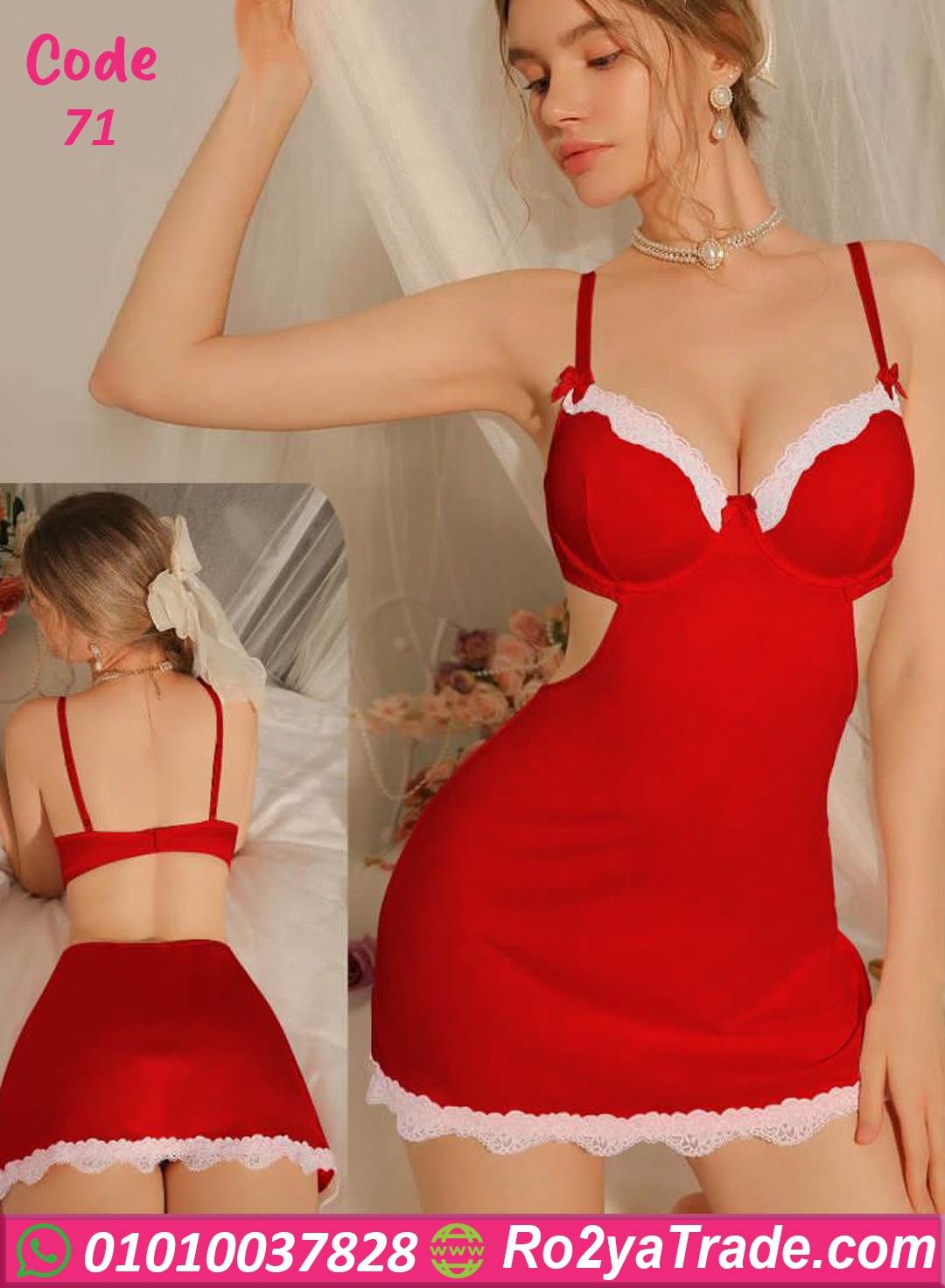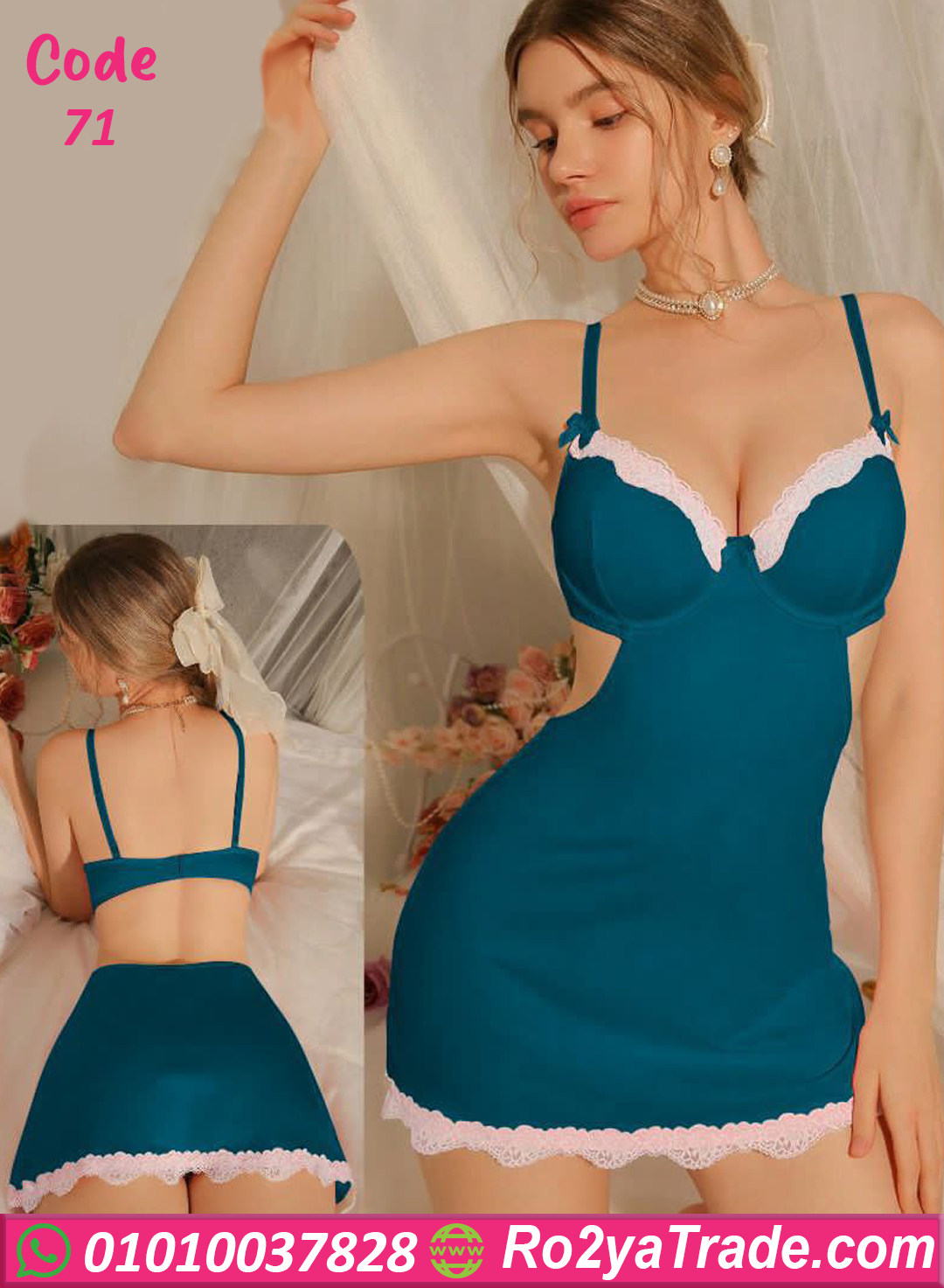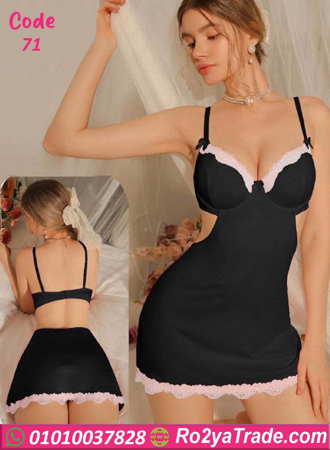 لانجري قصير ناعم ومثير بتصميم أنثوي جذاب يناسب كل البنات اللي بتحب الإطلالة الراقية وفي نفس الوقت ملفتة ومتنساش. الموديل جاي بخامة مريحة بيلبّس القوام بشكل مثالي وبيبرز جمال الجسم بخياطة شيك عند منطقة الصدر والدانتيل على الأطراف اللي بيضيف لمسة أنوثة فخمة. الموديل مناسب لليالي رومانسية وكمان كهدية مميزة. تقدري تختاري من أكتر من لون علشان يليق على ذوقك. اختيار مثالي لكل عروسة أو أي بنت بتحب الدلع والرقة في اللبس الداخلي ✨