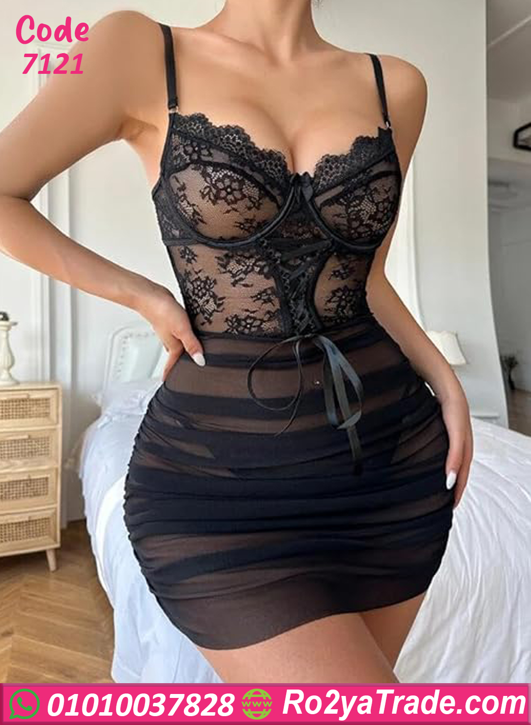 لانجري دانتيل ناعم بخامة مرنة مريحة في اللبس، الصدر مضبوط بتصميم كورسيه خفيف بيدي شكل منسق وجذاب، مع رباط ساتان بسيط بيكمّل اللوك.