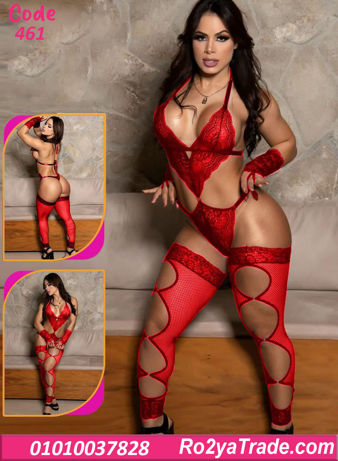 لانجري سلوبت دانتيل مثير مع جوانتي وجوارب شبك – كود 461