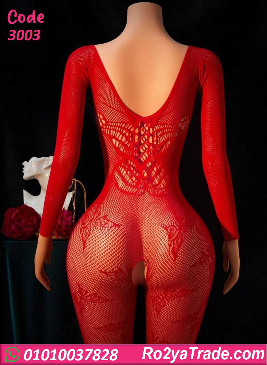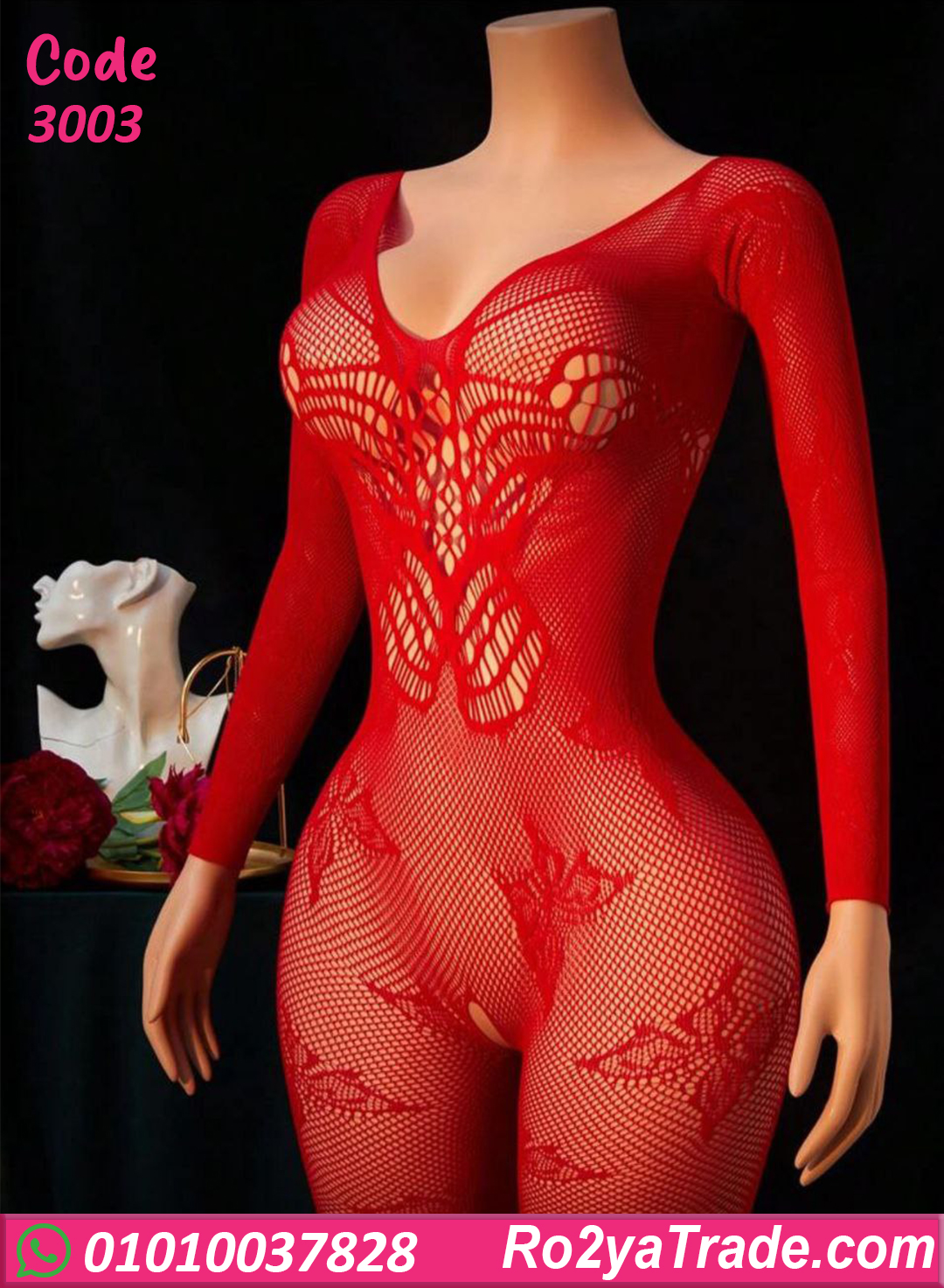 لانجري شبك جذاب باللون الأحمر، تصميم أنثوي جريء يبرز القوام ويضيف لمسة إغراء مميزة.