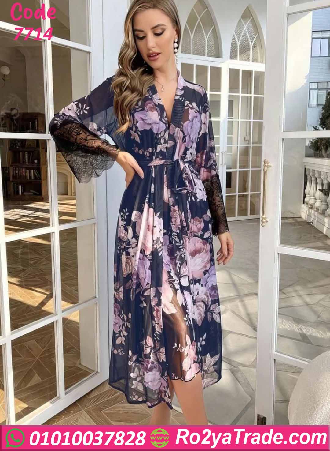 الموديل جاي مع روب طويل شيفون بنفس الطبعة بيدي لوك متكامل وأنيق جدًا 🔥