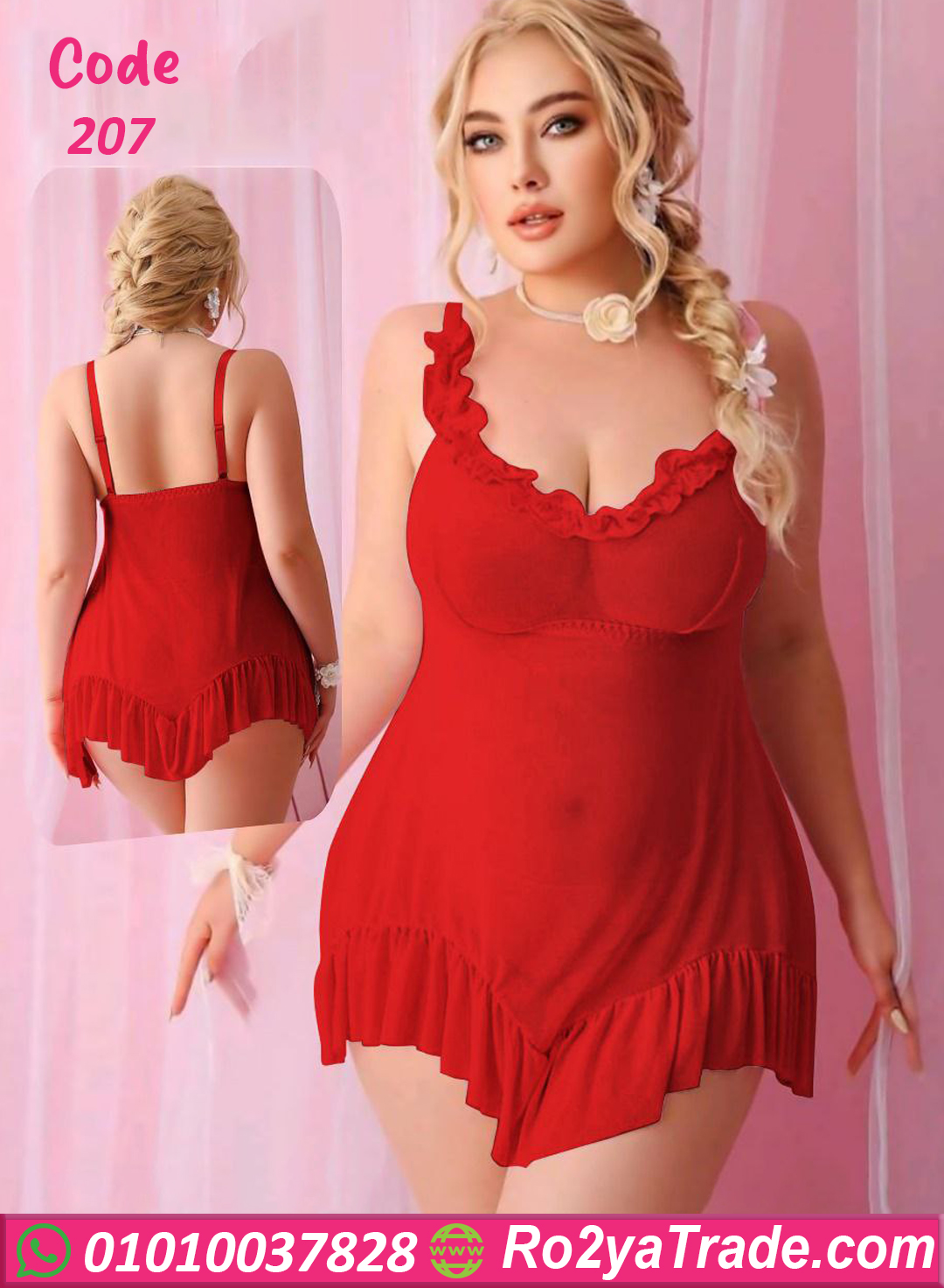 لانجري ناعم بخامة شيفون خفيفة، تصميمه رقيق جدًا بحواف كشكشة بتدي لمسة أنوثة ودلع ✨