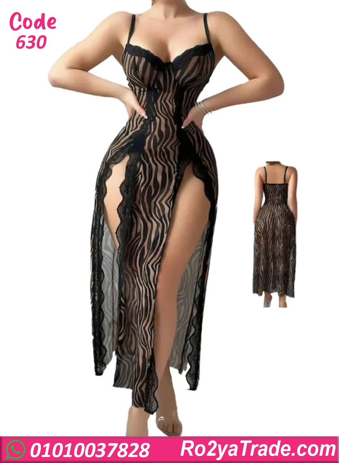 لانجري طويل بتصميم أنثوي جريء، خامة شيفون شفافة بخطوط متموجة بتبرز القوام وتدي إحساس مثير، مزود بفتحة جانبية طويلة وقصة صدر أنيقة تخليه اختيار مثالي للحظات الخاصة وتجديد الأجواء.