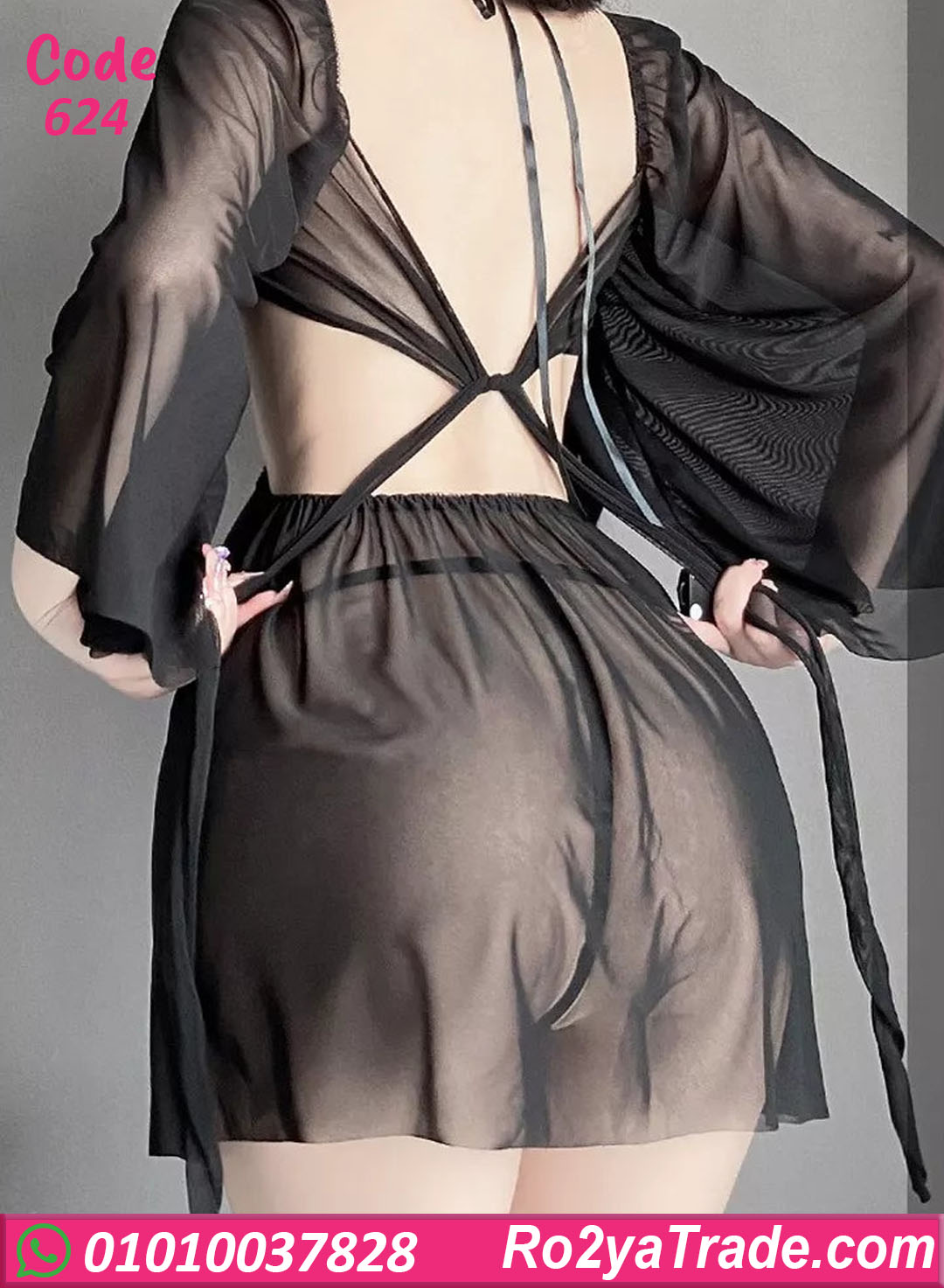 لانجري قصير بتصميم أنثوي جذاب، خامة شيفون ناعمة وشفافة بتدي إحساس خفيف ومثير، مزود بقصة صدر أنيقة مع تفصيلة قلب في المنتصف وأكمام واسعة تضيف لمسة جريئة تخليه اختيار مثالي للحظات الخاصة وتجديد الأجواء.