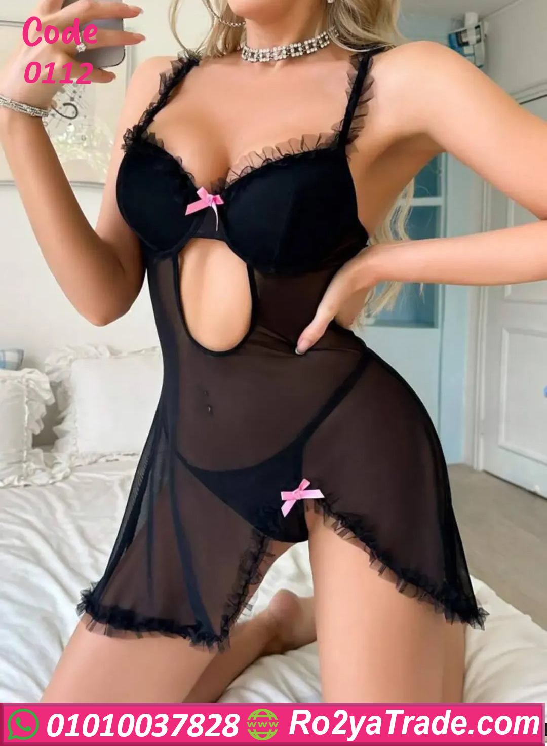 لانجري شيفون قصير موديل 0112 تصميمه ناعم ومثير في نفس الوقت. الخامة شيفون خفيفة على الجسم وتدي إحساس أنثوي عالي جدًا، مع صدر مبطن ودعم ممتاز يبرز جمال القوام.