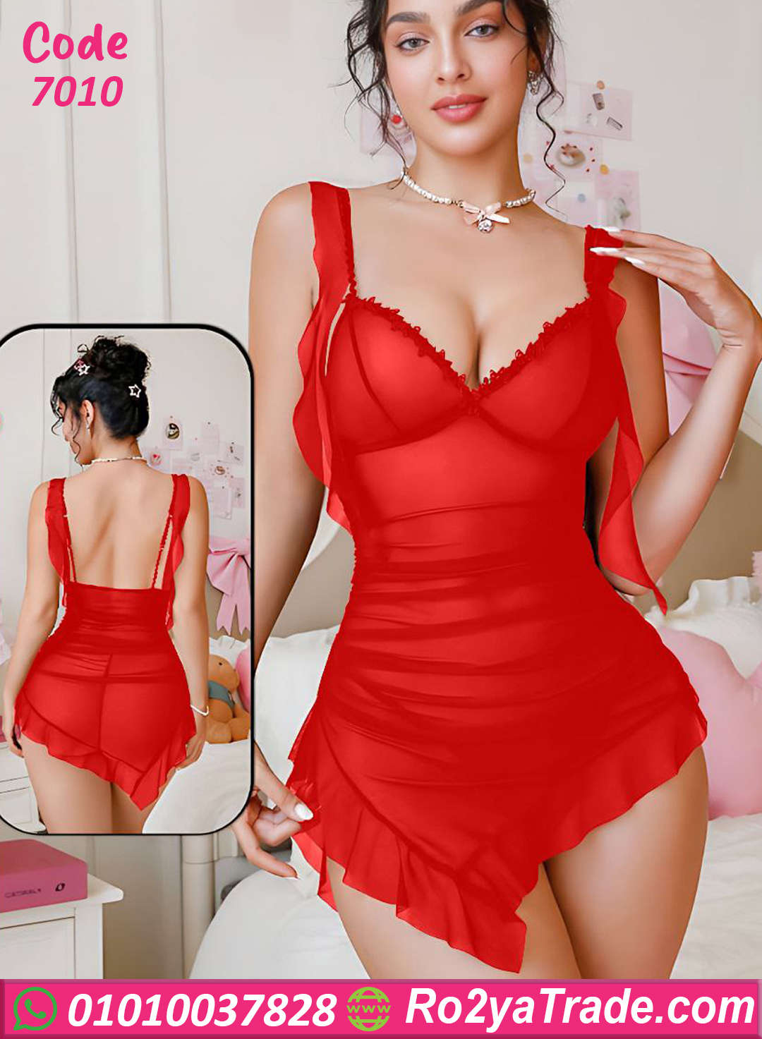 لانجري قصير شيك جدًا بخامة شيفون ناعمة وخفيفة، تصميمه مجمّع من الوسط وبحمالات عريضة عليها كشكشة بسيطة بتدي شكل أنيق ورقيق.
