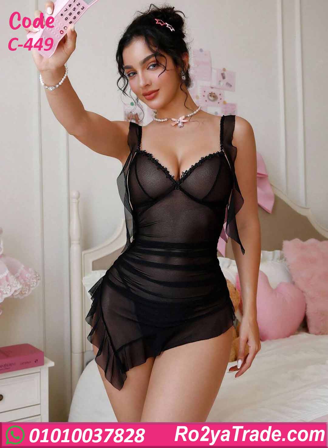 لانجري شيفون C-449 اختيار مثالي لكل ست بتحب الإطلالة الأنثوية الناعمة مع لمسة جاذبية
