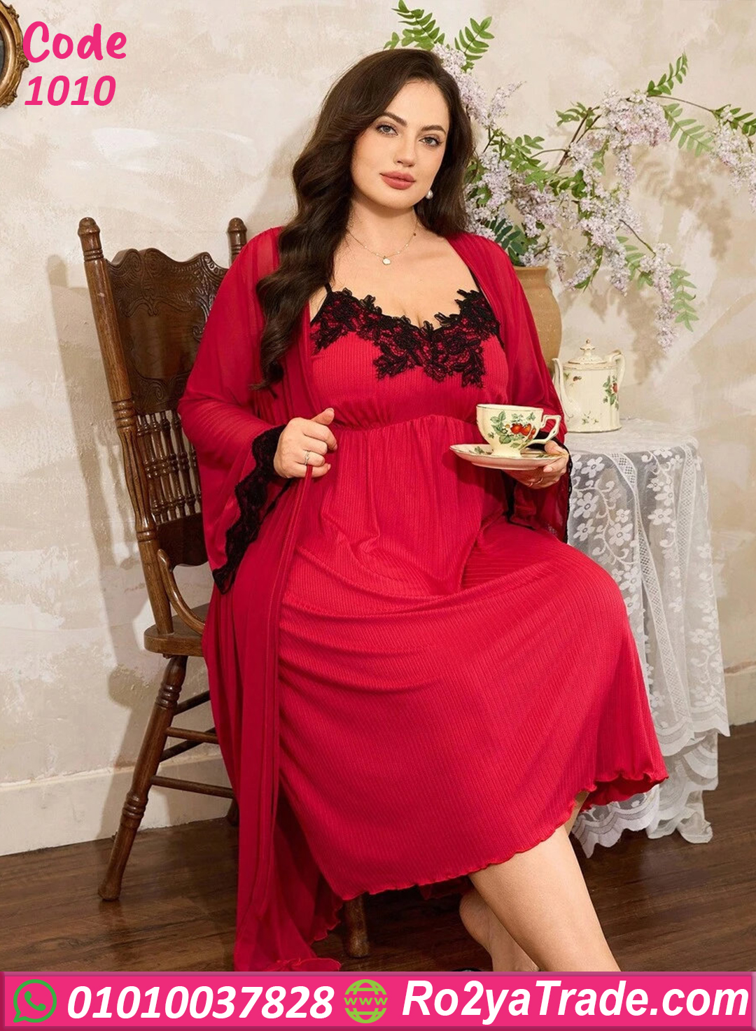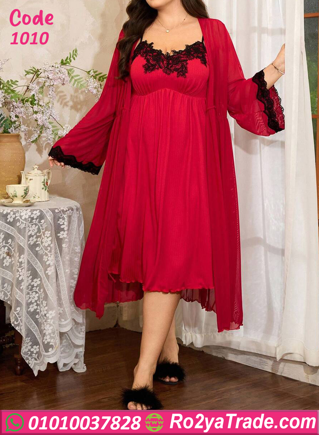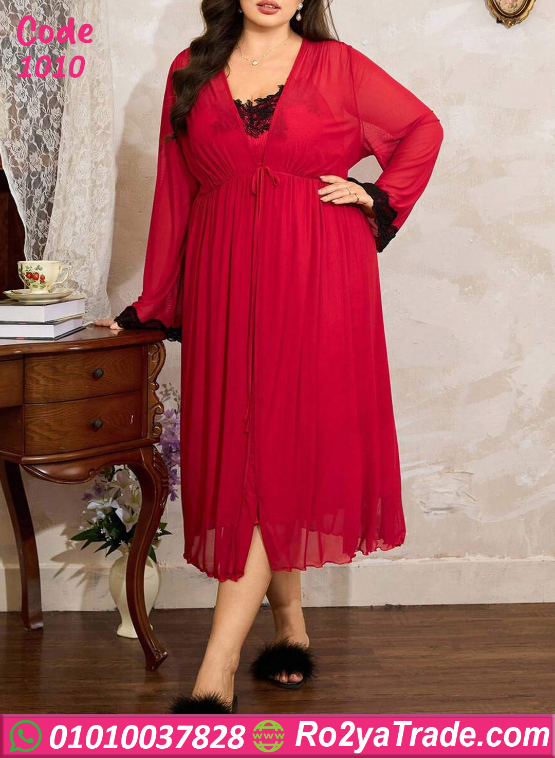 لانجري طويل بالدانتيل الأحمر – كود 1010