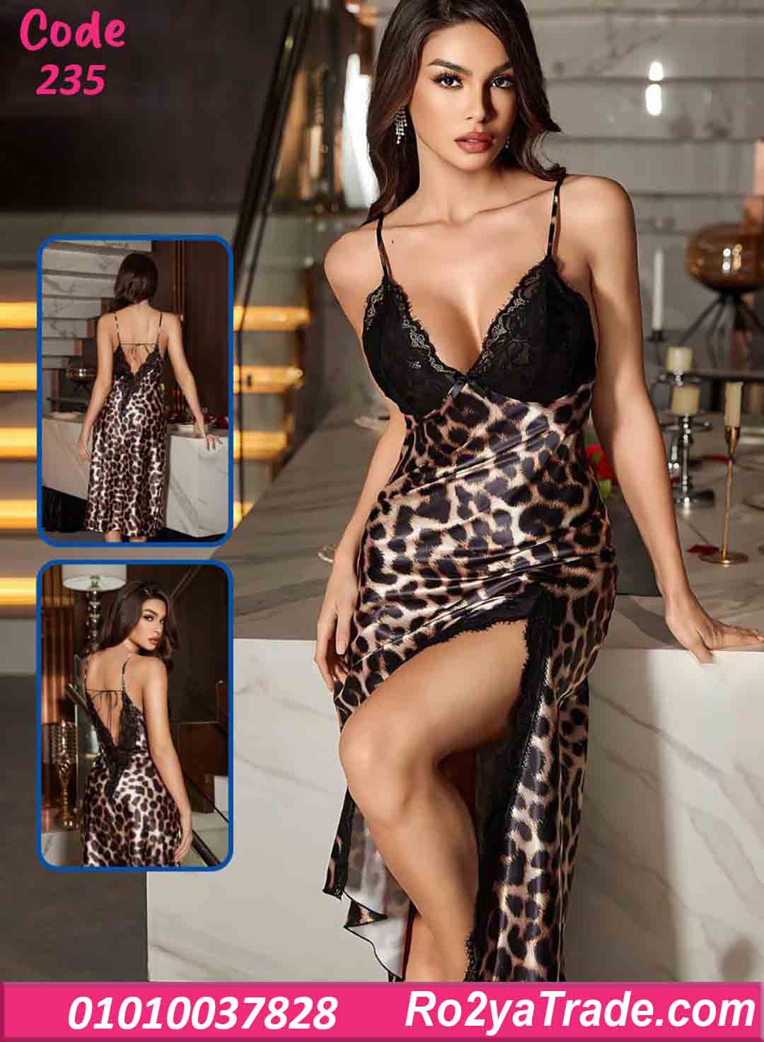 التصميم مزود بفتحة جانبية طويلة على الساق لإبراز الأنوثة، وظهر مفتوح بحمالات رفيعة تضيف لمسة جريئة راقية، مما يجعله مثالي للمناسبات الخاصة واللحظات الرومانسية 🐆🔥
