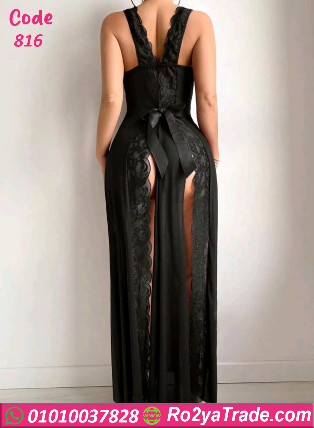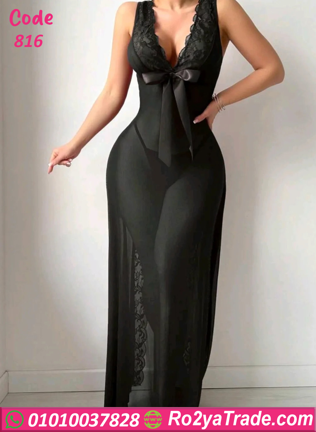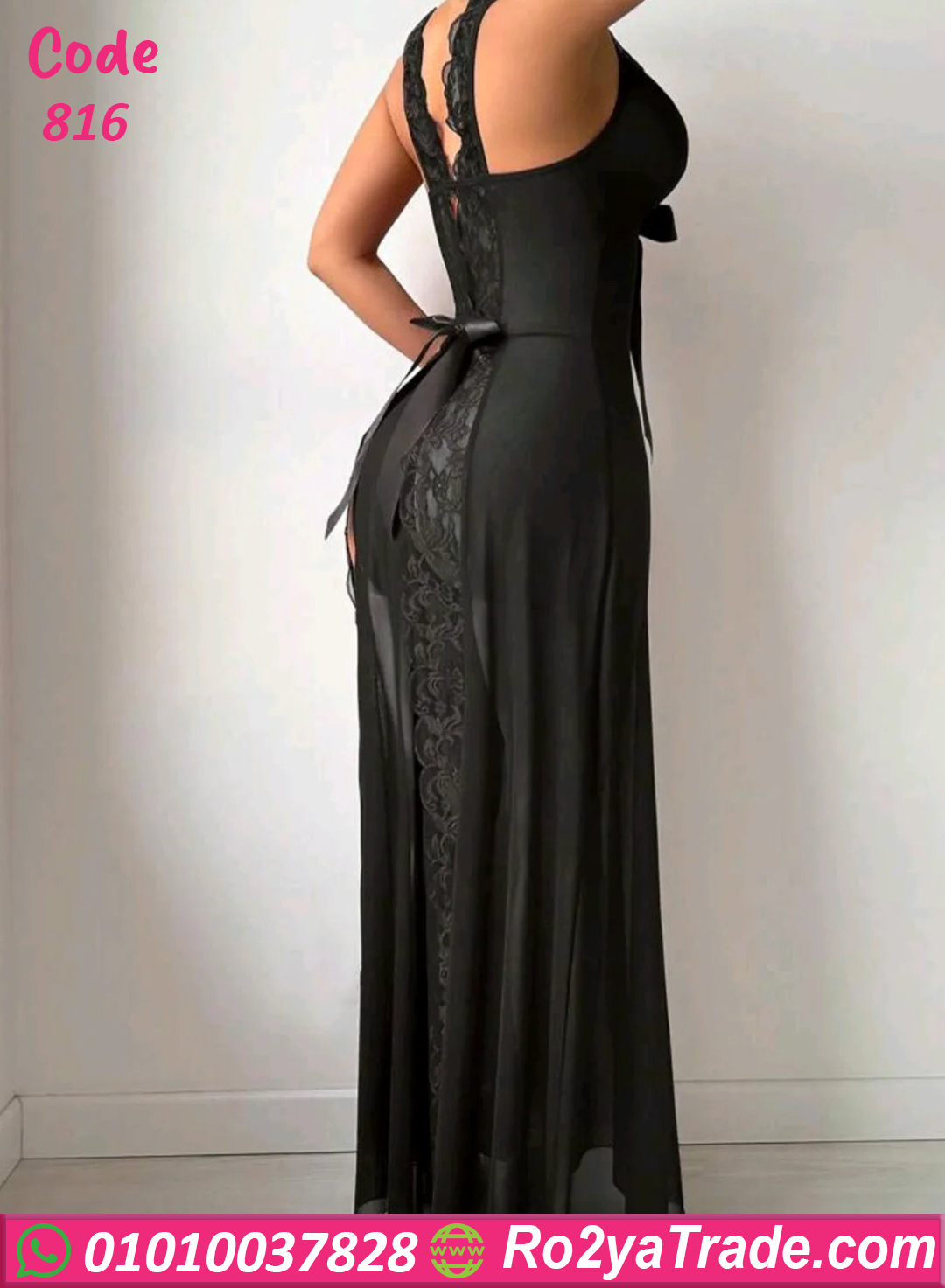 لانجري طويل خامة ناعمة وشيك جدًا، بتصميم مفتوح من الظهر وفيونكة كبيرة بتدي لمسة أنوثة وأناقة.