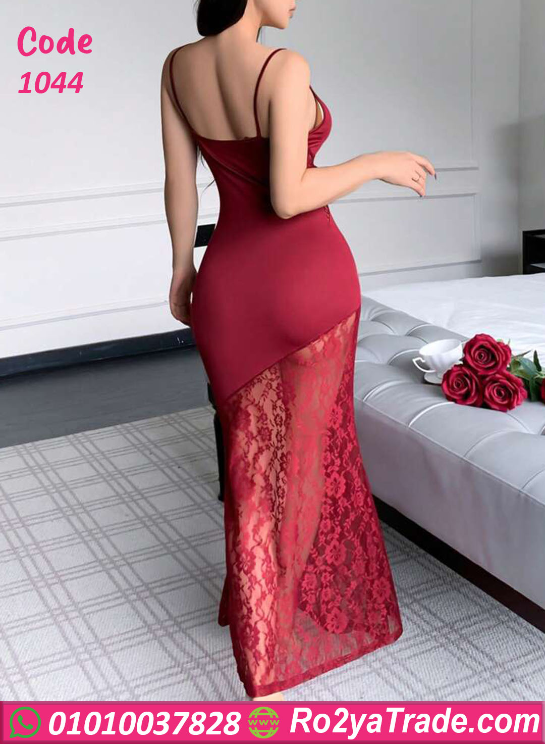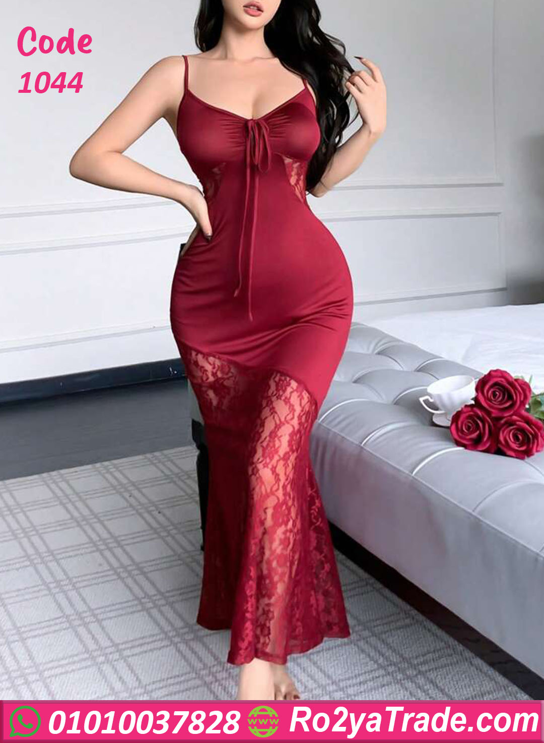 الطقم عبارة عن فستان لانجري طويل بخامة ناعمة مريحة على الجسم، مع دانتيل من الجنب والسفل بيبرز جمال القوام ويضيف لمسة فخمة وجريئة في نفس الوقت 😍