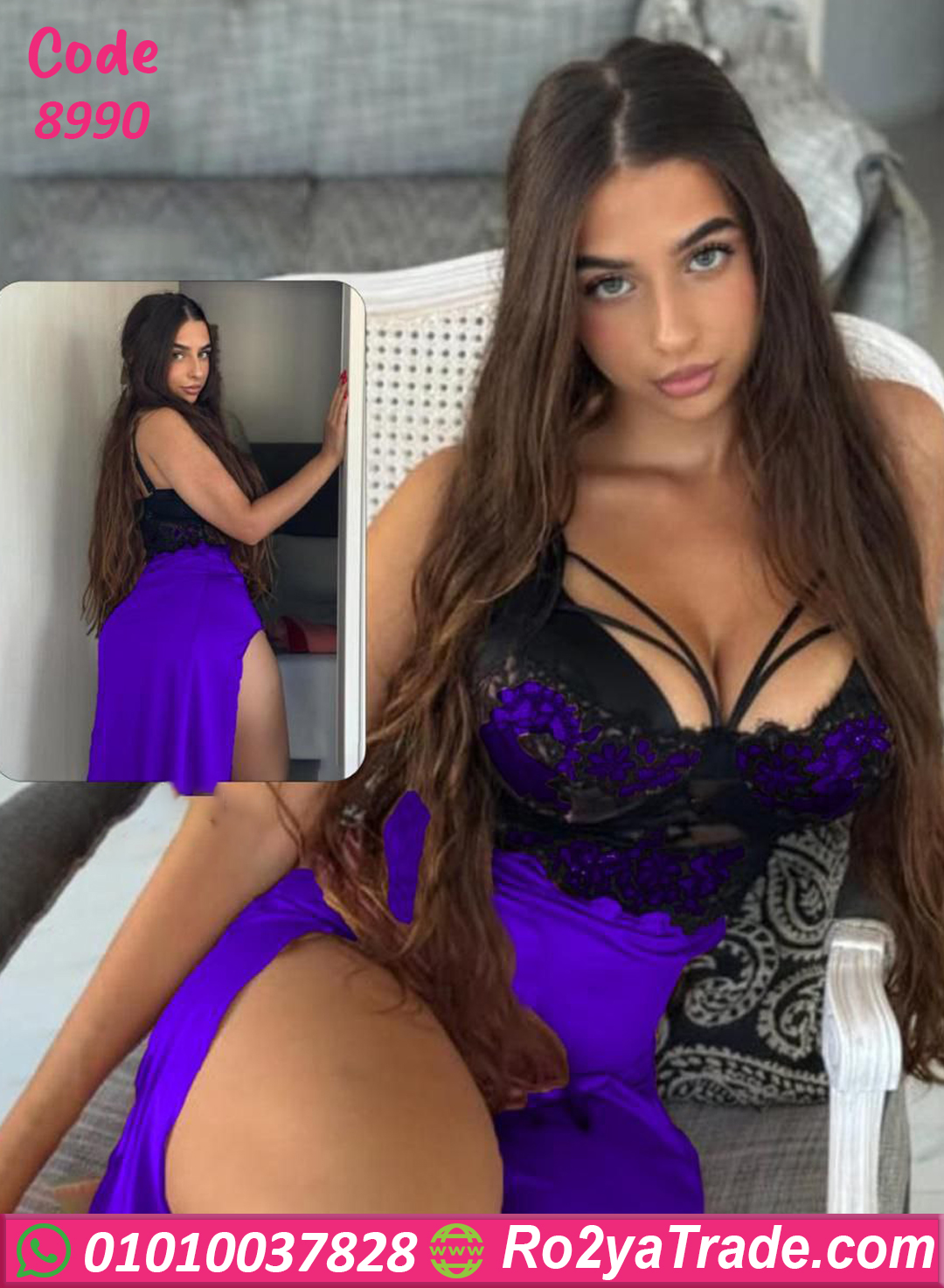 اللانجري معمول من خامة ستان ناعمة جدًا على الجسم مع دانتيل أنثوي بلمسة فخمة في الجزء العلوي. الفتحة الجانبية الطويلة بتدي شكل مغري ومميز جدًا 😍