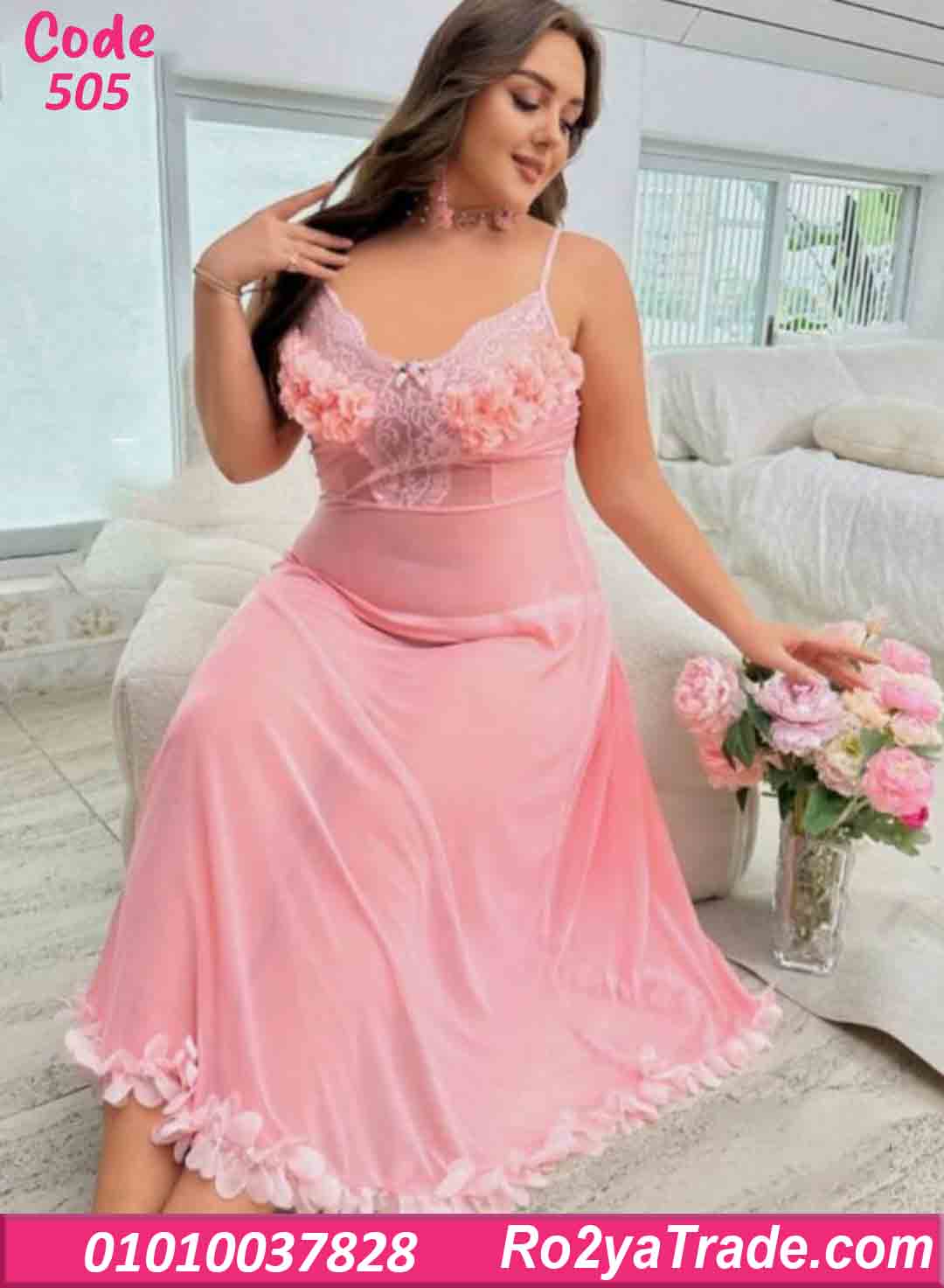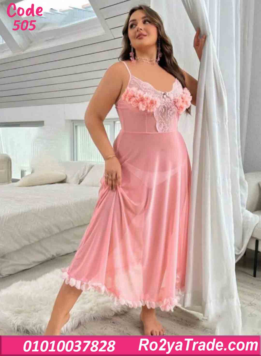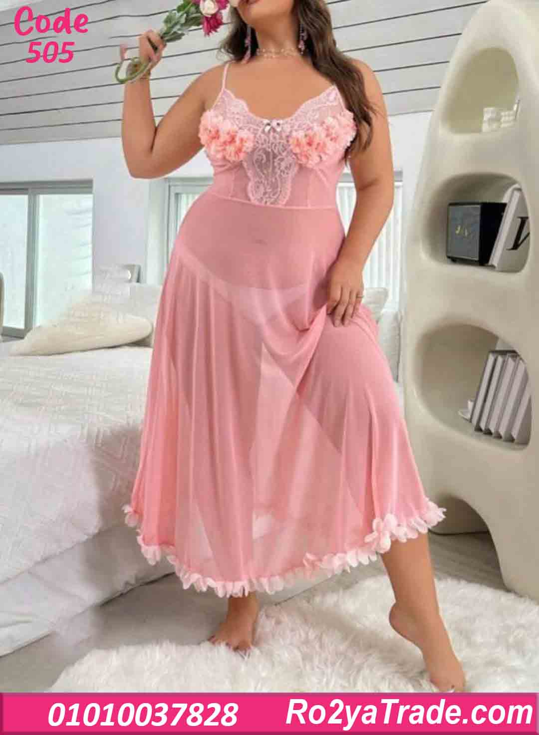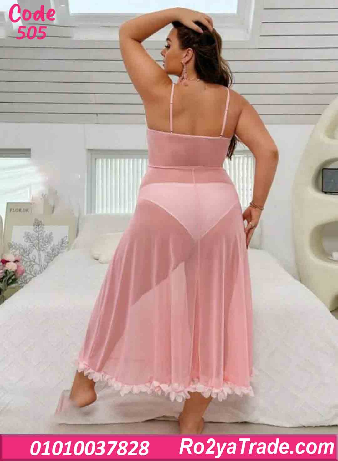 اطلبي الآن لانجري طويل شيفون وردي كود 505 بأفضل سعر