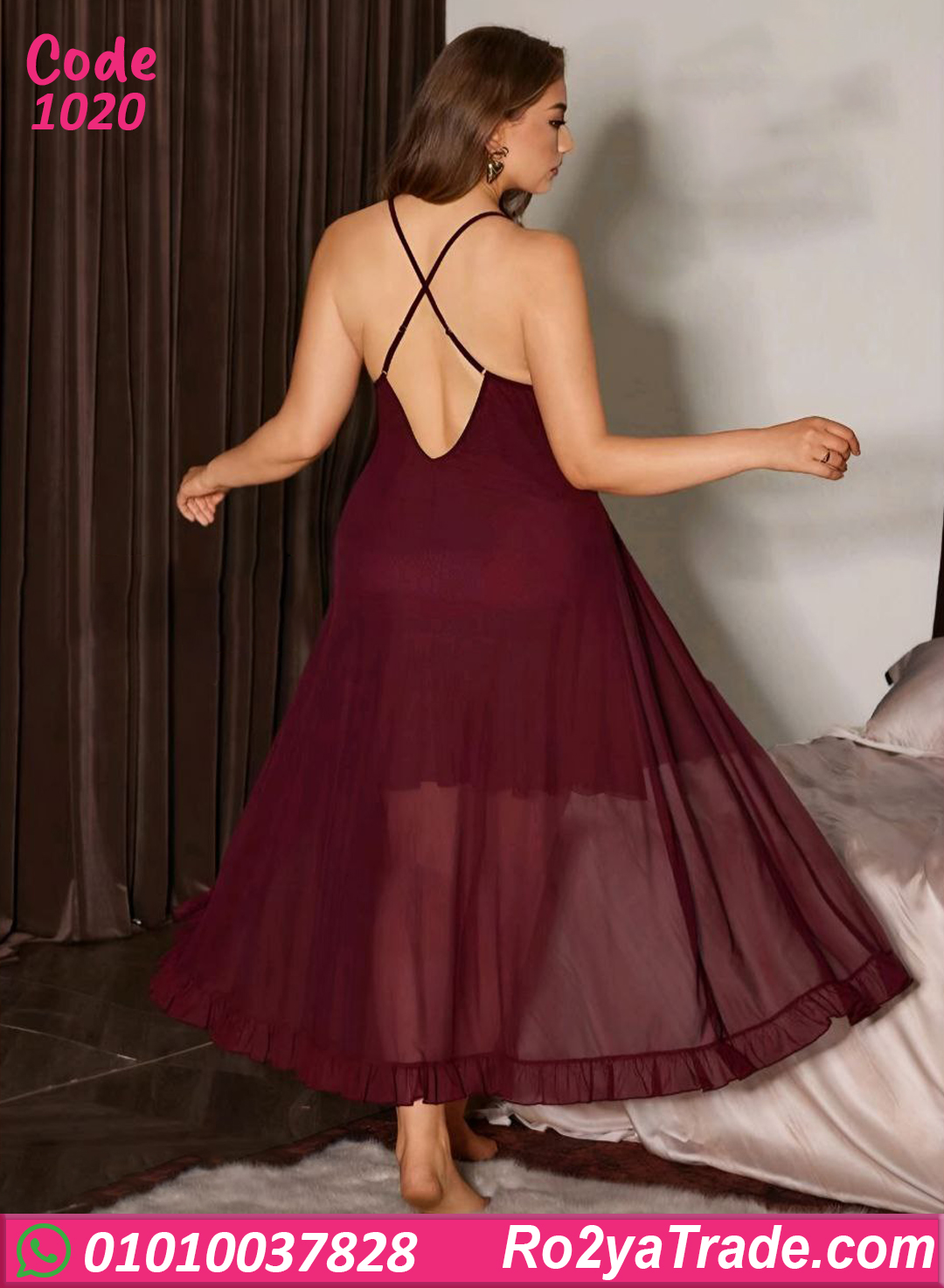 لانجري طويل شيك وجذاب بلون عنابي أنيق، تصميم أنثوي ناعم بيبرز القوام ويدي إحساس فخم ومثير، مناسب للبيت وللّحظات الخاصة مع لمسة دلع وأناقة.