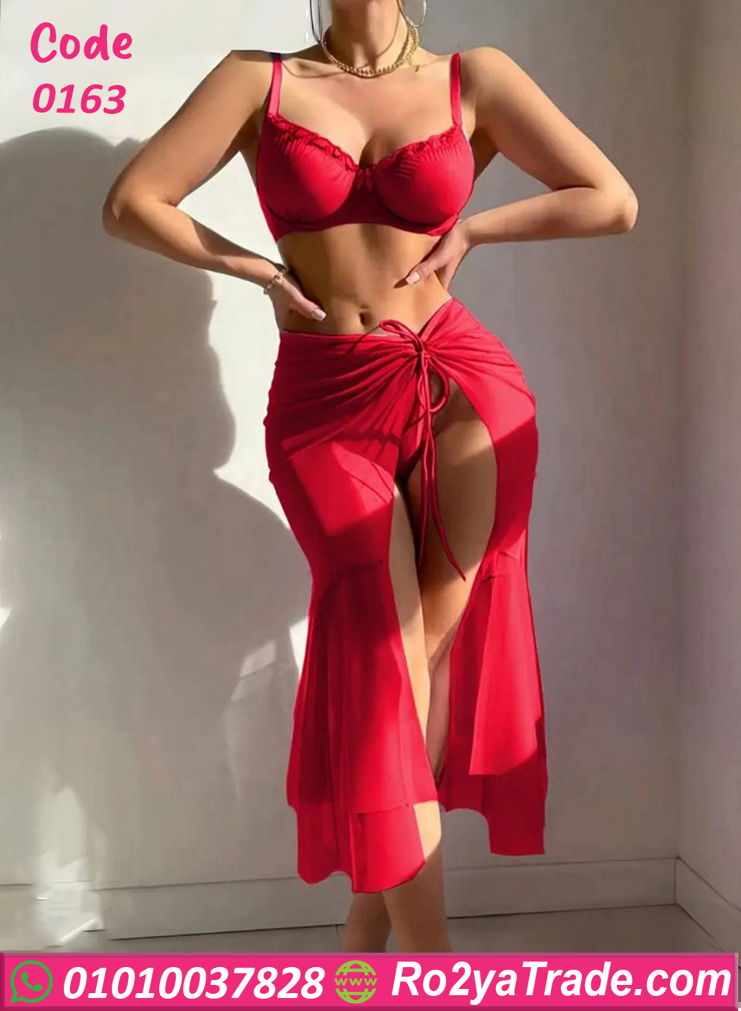 لو عايزة طقم يغيّر شكل يومك ويخليكي طالعة بإطلالة مختلفة، موديل لانجري طويل – كود 0163 هو الاختيار المثالي. الطقم خامته ناعمة ومريحة على الجلد، وبيجمع بين البرا المشدود اللي بيدي رفع وشكل أنوثي، مع جيب ميني شيفون بتصميم مفتوح وريبون من قدام لإطلالة أكتر جاذبية مناسب للمتزوجات وللسهرات الخاصة، وبيجي بمقاس وان سايز مرن يناسب لحد 80 كيلو. شكله فعلاً فخم ومميز وهيضيفلك ثقة وأنوثة في أي وقت.