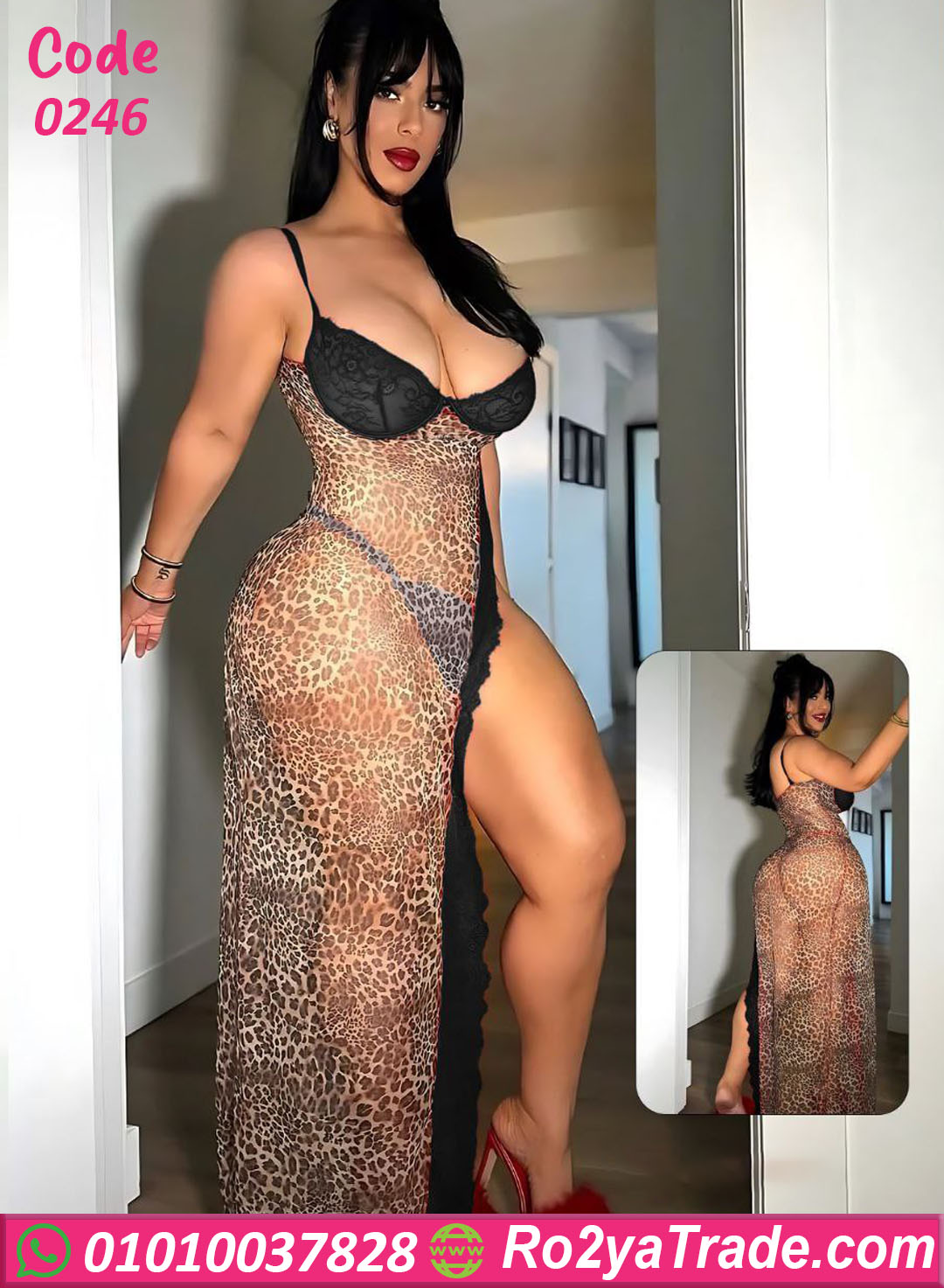 لو بتدوري على لانجري طويل يجمع بين الجرأة والأناقة، فالموديل ده اختيار قوي. التصميم طويل بفتحة جانبية عالية تضيف لمسة جريئة ومغرية، مع نقشة تايجر جذابة وتفاصيل دانتيل على الصدر تزيد من الإحساس بالأنوثة. القصّة بتبرز القوام بشكل ناعم ومتوازن من غير مبالغة.